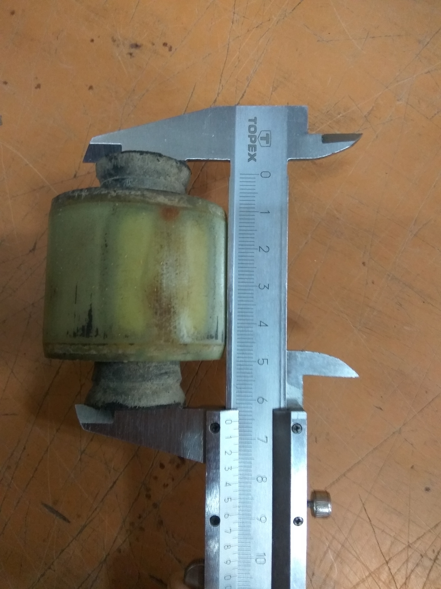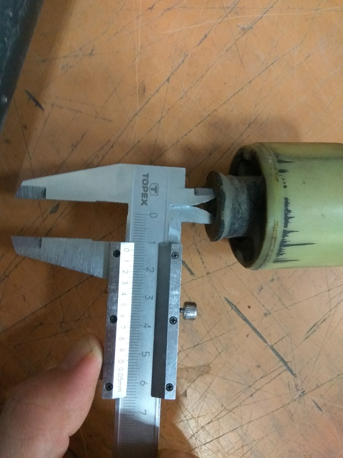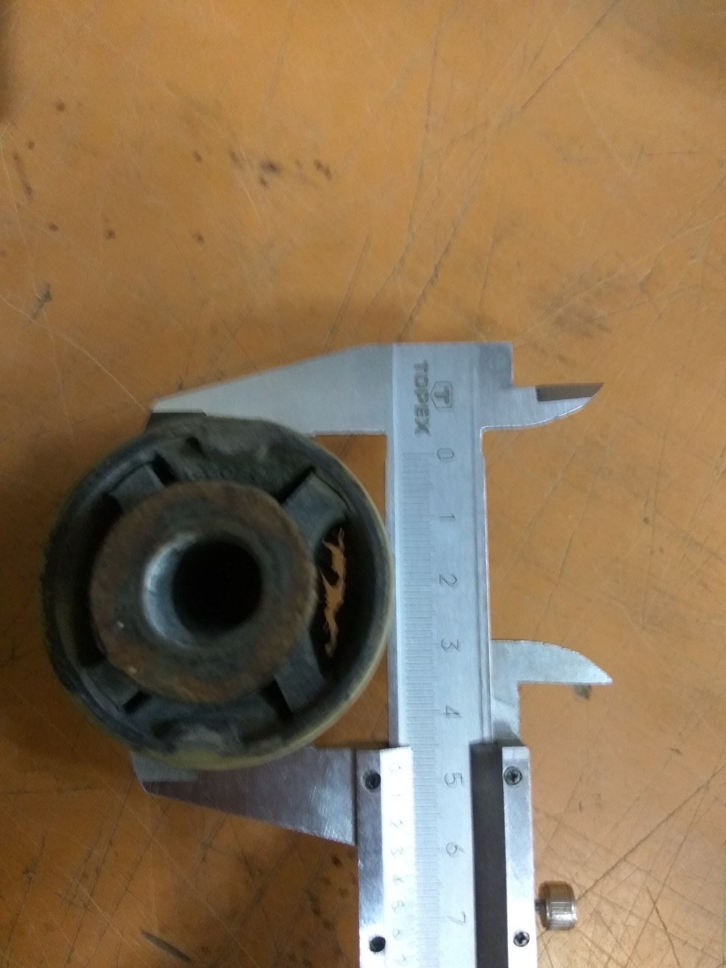 Наружный диаметр замерять не вышло, так как сайленблок запрессован в аморт, а резиновые бортики мешают замерять, но я замерял внешний диаметр уха амортизатора и толщину металла верхнего уха, думаю расчитать получится.