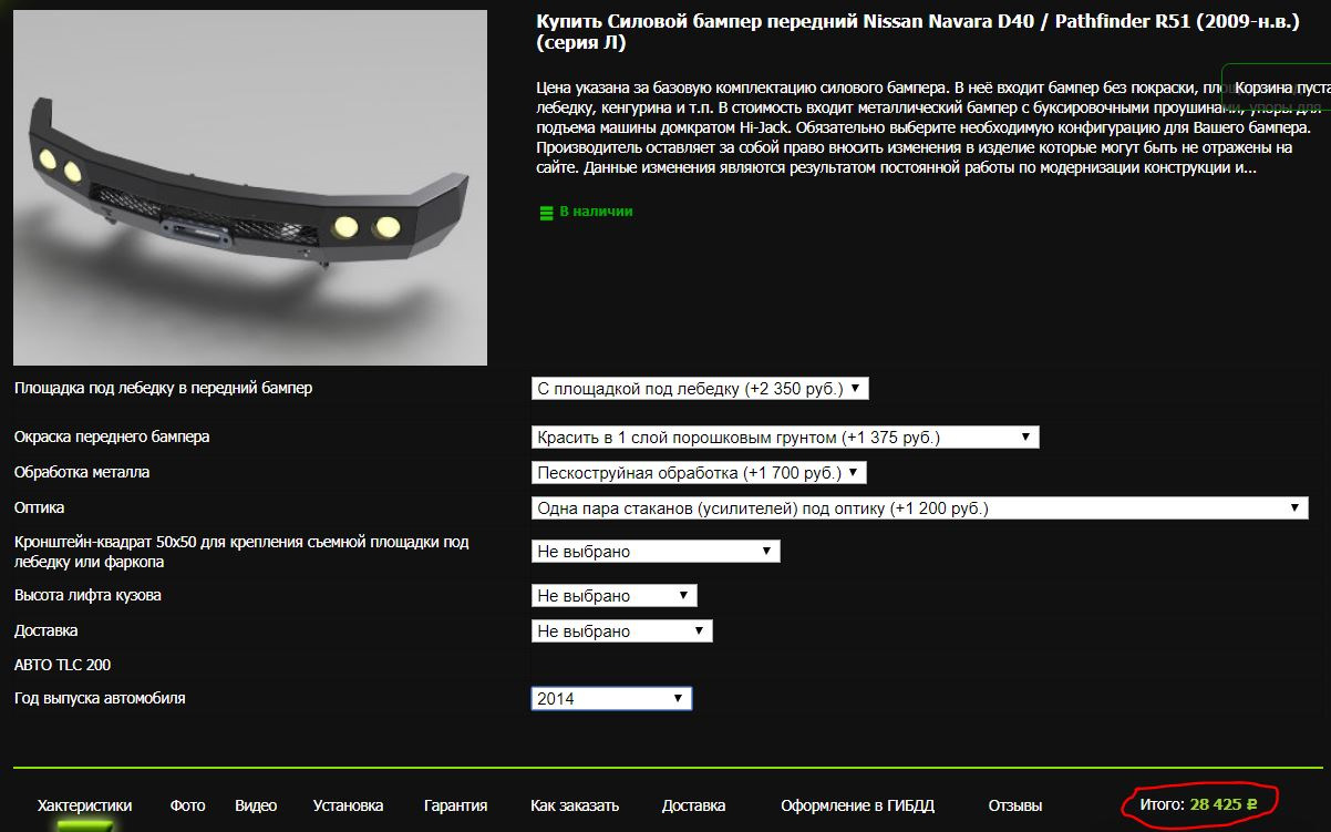 Для того что бы передний силовой бампер на Pathfinder R51 были похож на стоковый, производитель АМЗ, он же «Лаборатория Полного Привода» режет стоковый бампер, оставляя его верхнюю часть, которая контактирует с фарами, решеткой радиатора, крыльями и т.д. Мне же стало жалко мои новенькие стоковые бампера, и я заказал Тайваньский пластик, не крашенный за 3500руб. :) Пришел за 3 дня. Искал на Авито…