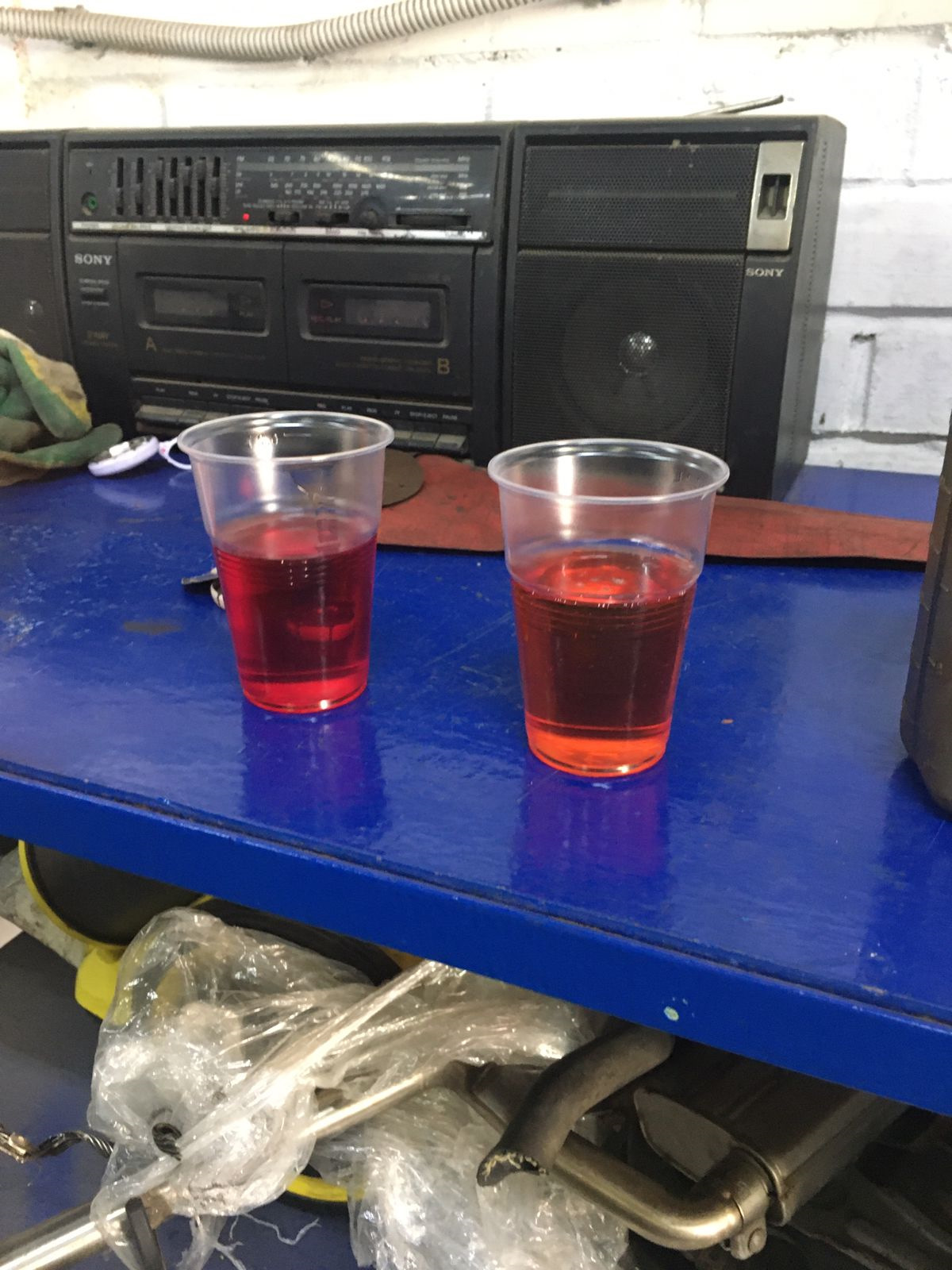 Процедура простая, на предыдущей машине проверенная: шприц, трубочка, баночка. Вышло около 150 грамм лишней жидкости. Показания — на миллиметр ниже верхней риски. Можно было еще откачивать (грамм 100), но не стал.
