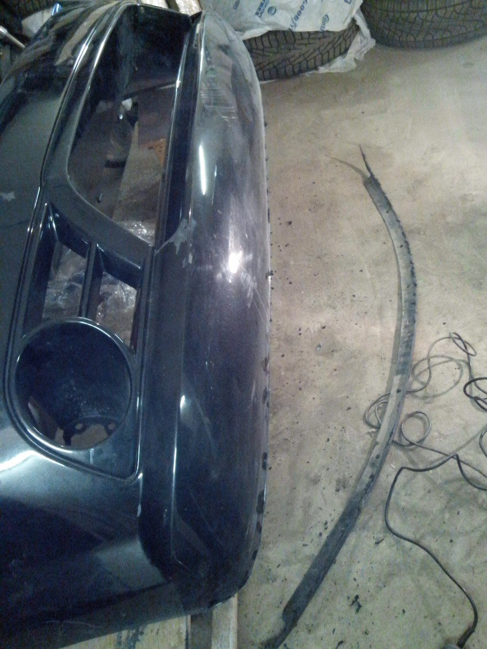 В стоке там пластиковый суппорт, который крепиться к бамперу и к нижней части телевизора. Когда отрезаешь губу, то одновременно отрезаешь и этот крепеж на бампере.