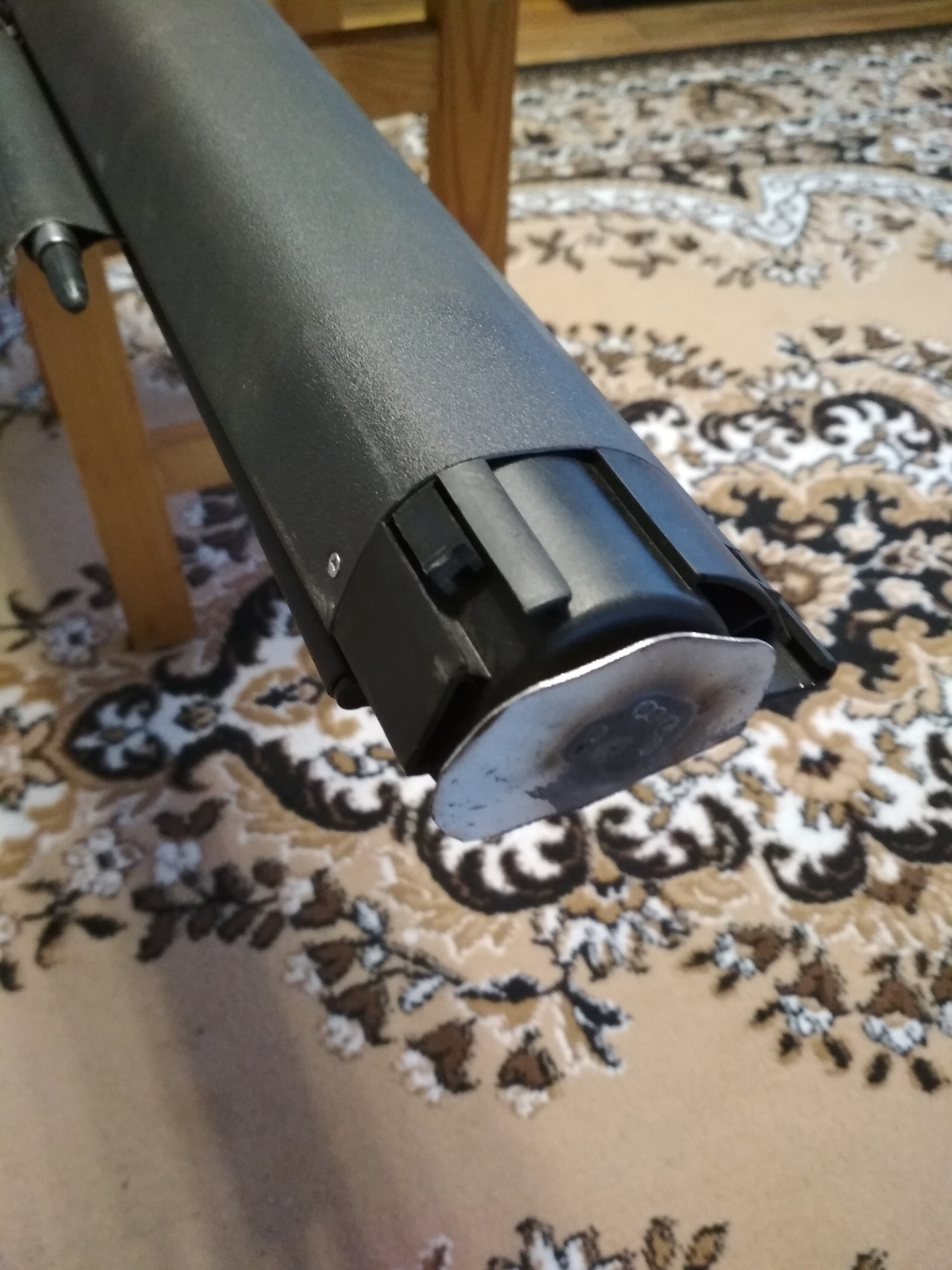 — затем необходимо сделать так, чтоб трубка не проворачивалась необходимо сделать собственно стопор, я использовал стальную пластику, которую вырезал по форме кожуха или близко ей, чтобы в кожухе стопор не мог провернуться и приварил пластину к уже готовой заготовке