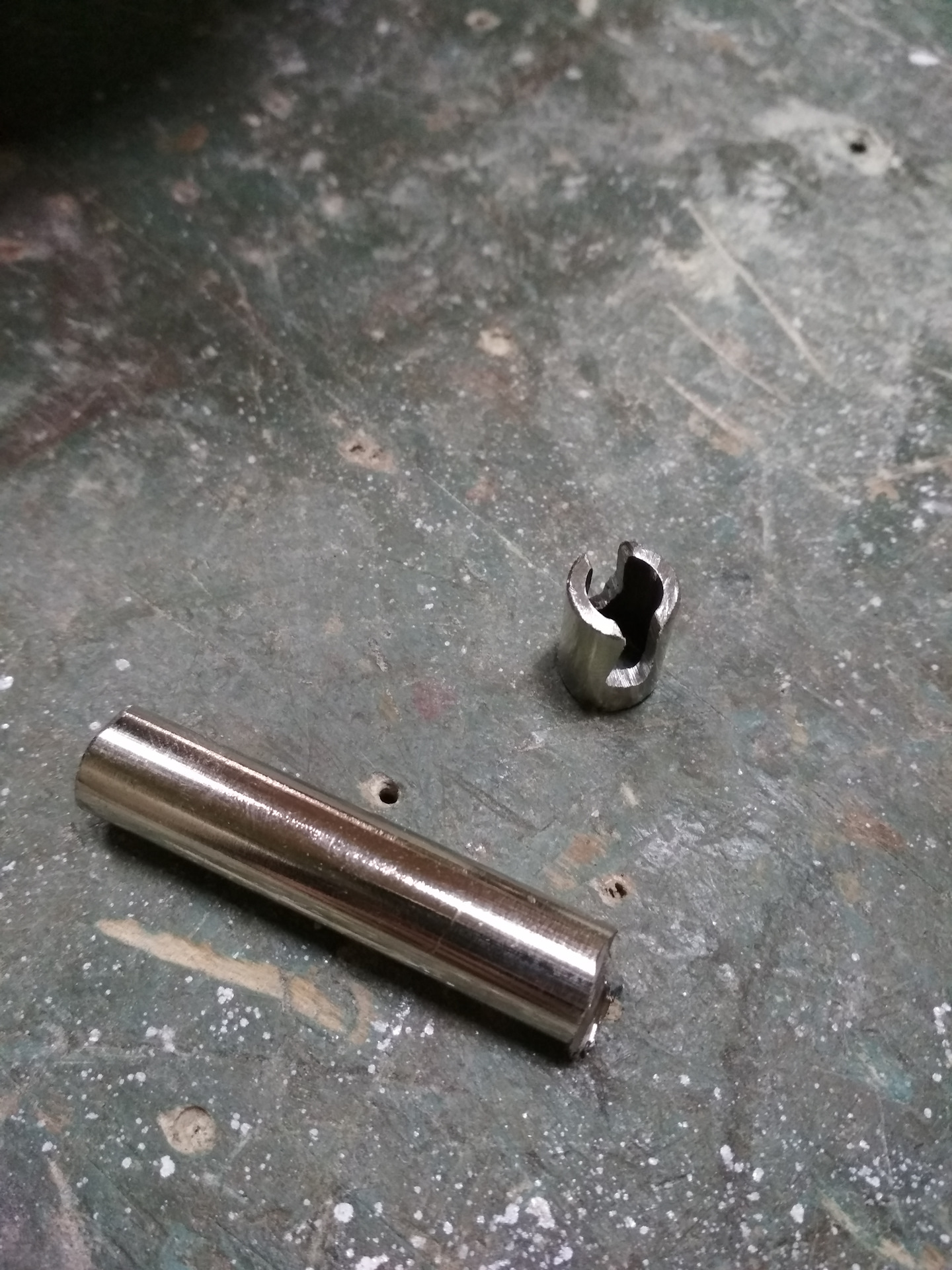 — необходимо сделать новое крепления, для этого использовал стальную трубку внутренним диаметром 7мм, что является оптимальным для посадки на вал шторки . Для того чтобы трубка села нужно сделать прорези под усы, которые мы видим на предыдущем фото . Длинна трубки 2-3 см точно не замерял, но длиннее делать не стоит, т.к. просто не посадите шторку в штатное место багажника .