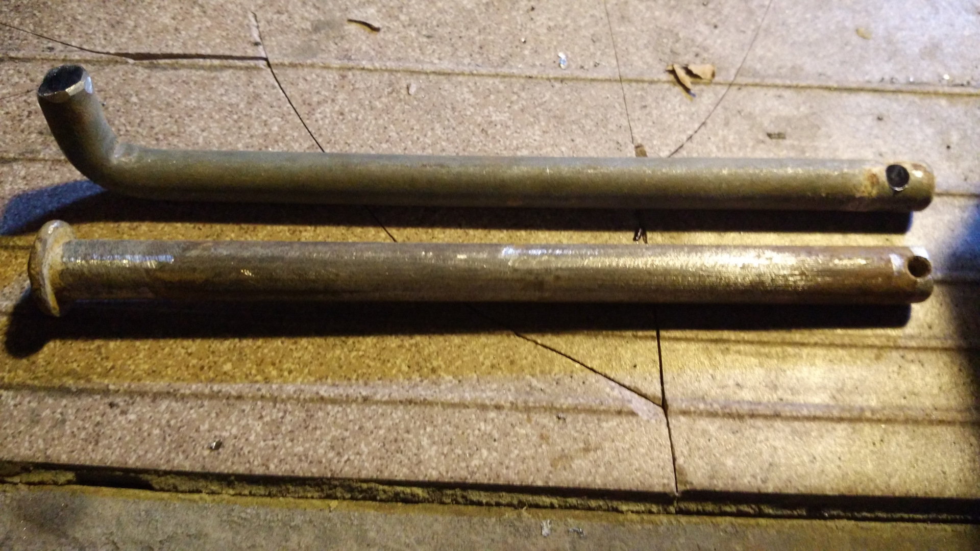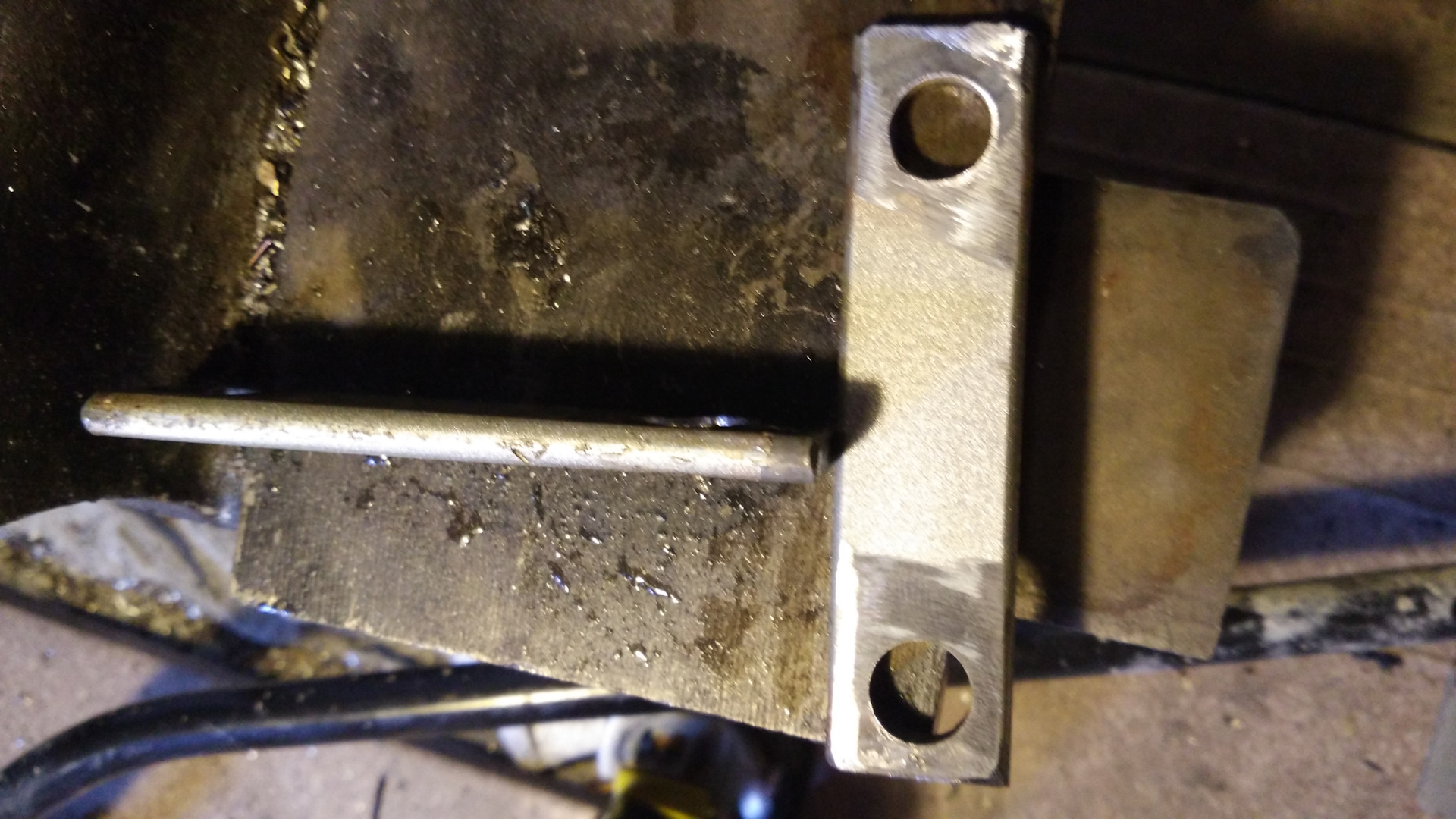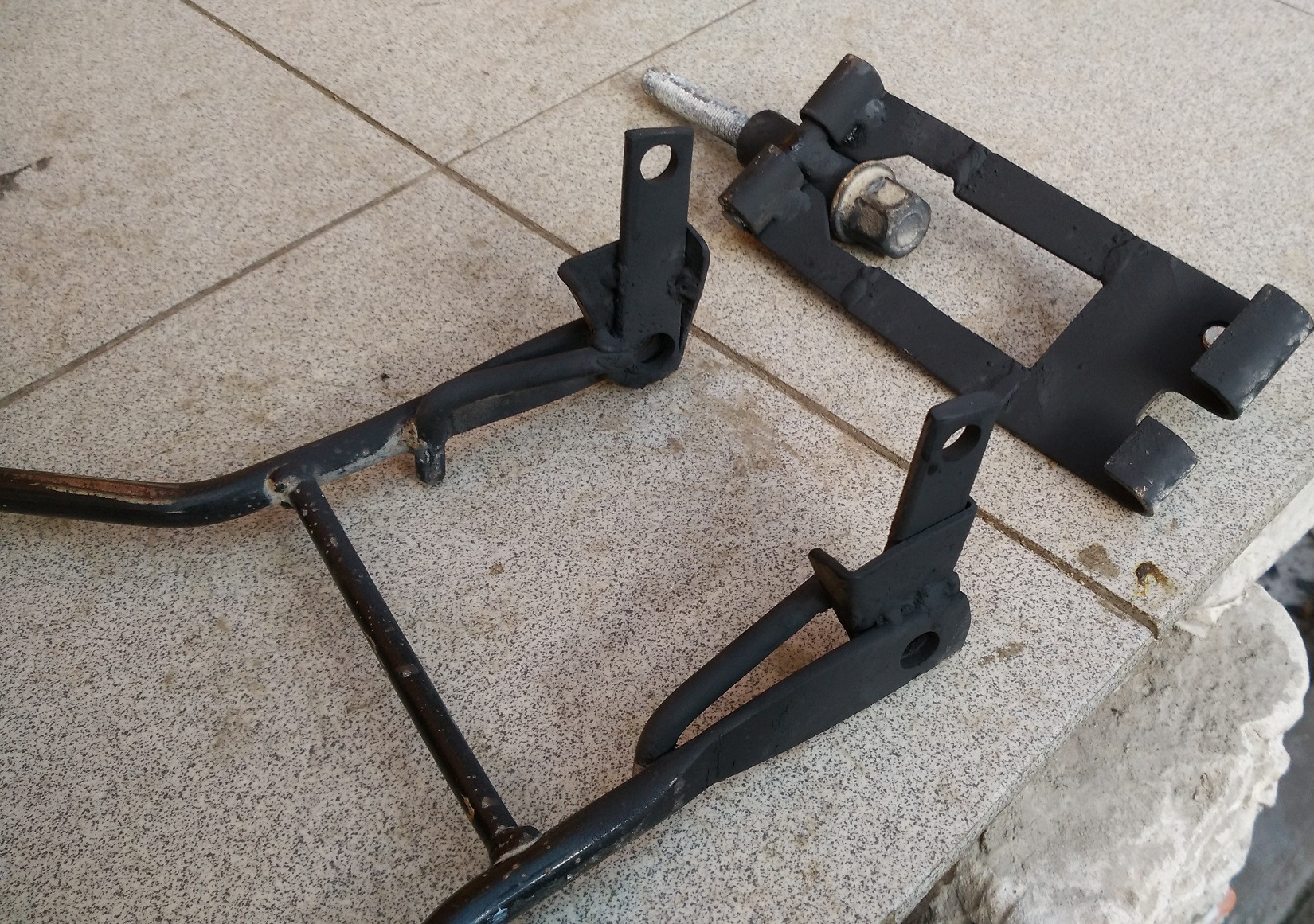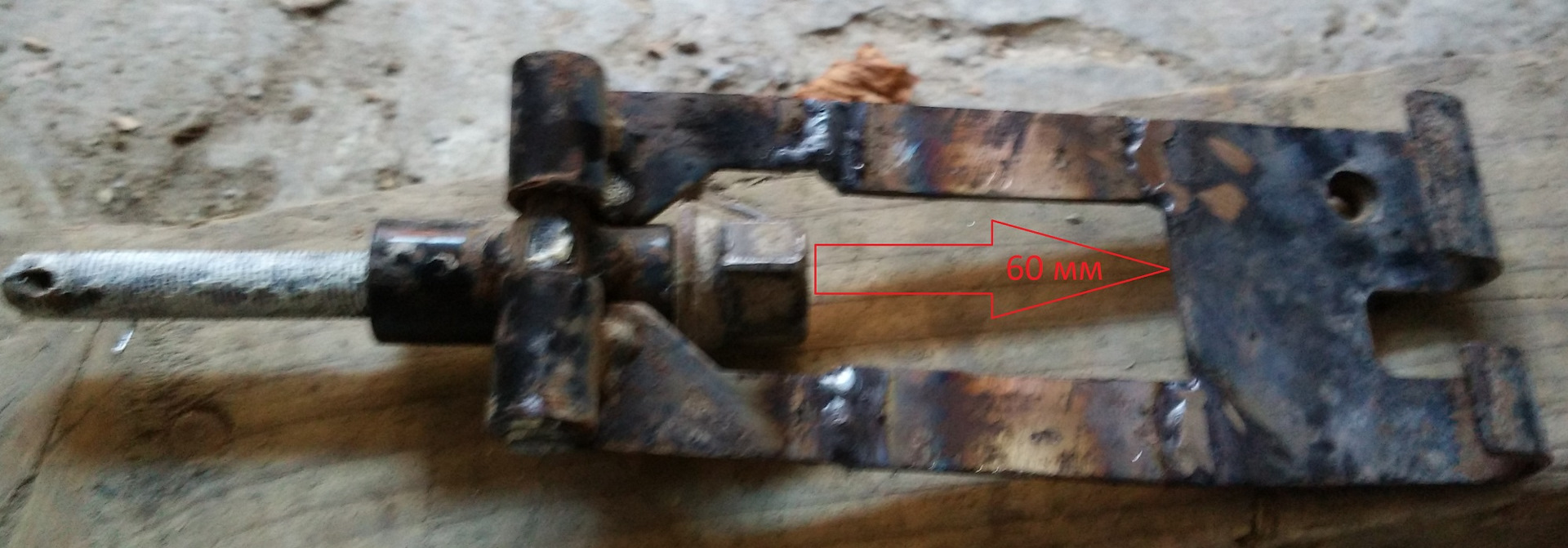 Выпилил из стали 5мм удлинители расстояние между отверстиями 60 мм, изготовил аналог родного стержня под шплинт, но потом решил отказаться от лишнего подвижного элемента в пользу сварки.