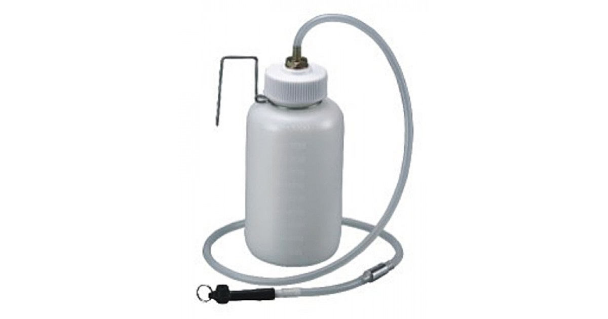 Одеть прозрачный шланг (например откапельницы) и опустить в бутылку с небольшим кол-вом тормозной жижи.