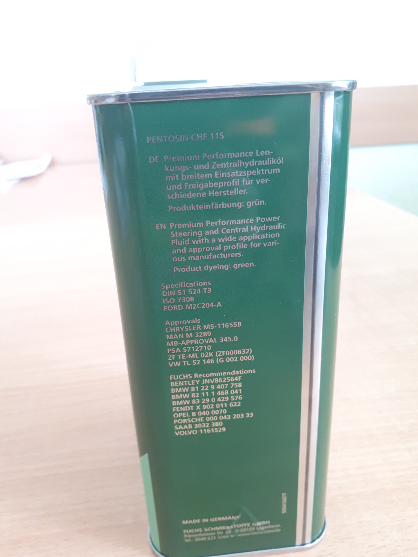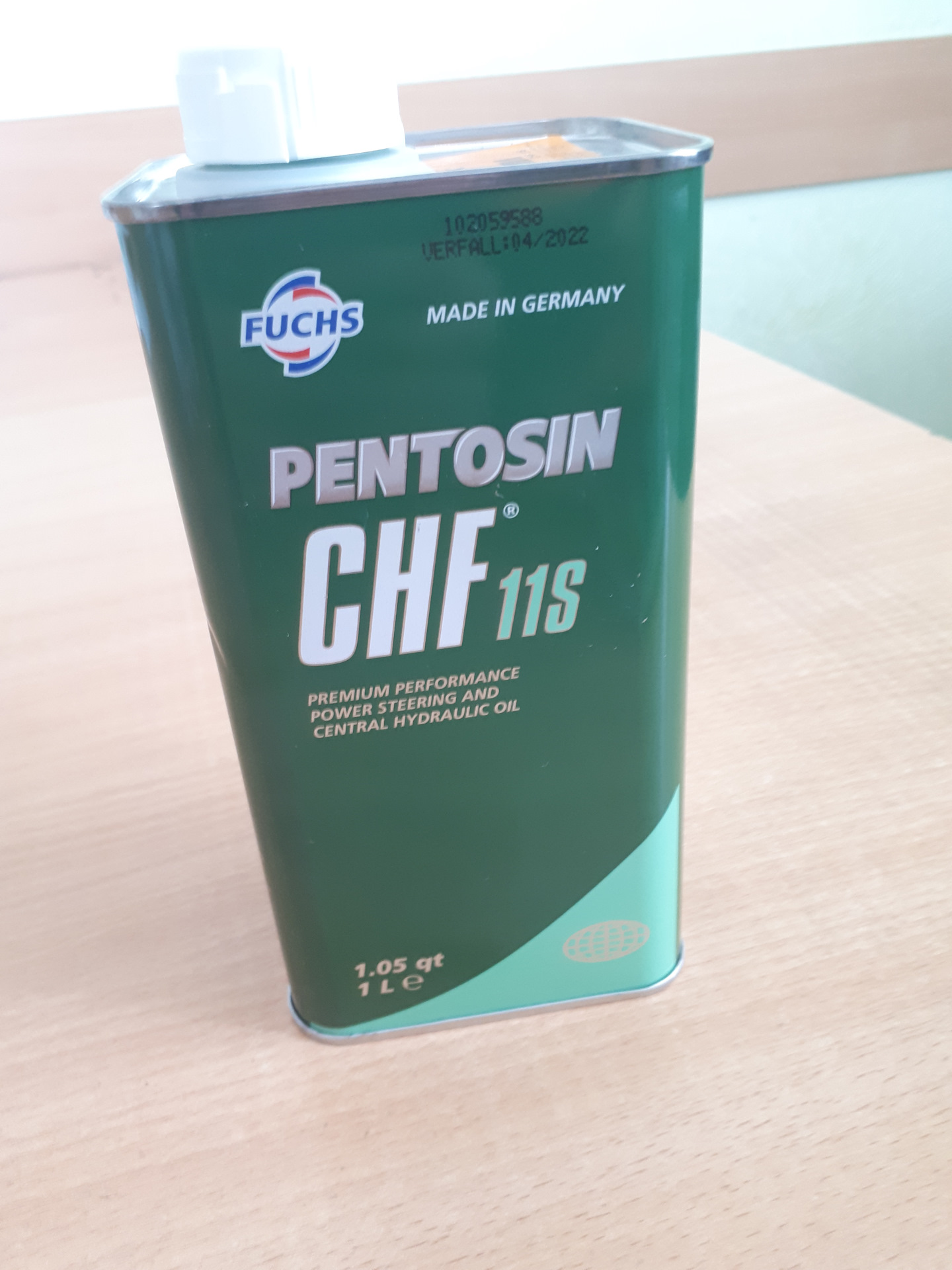 Так как жидкость все таки немного ушла, то я приобрел еще жидкость, по оригинальному номеру, и допуску BMW. А именно Pentosin CHF 11s, в моем случае данная жидкость шла с завода (темно зеленого цвета), так же в BMW использовали жидкость ATF (светло-красного цвета).