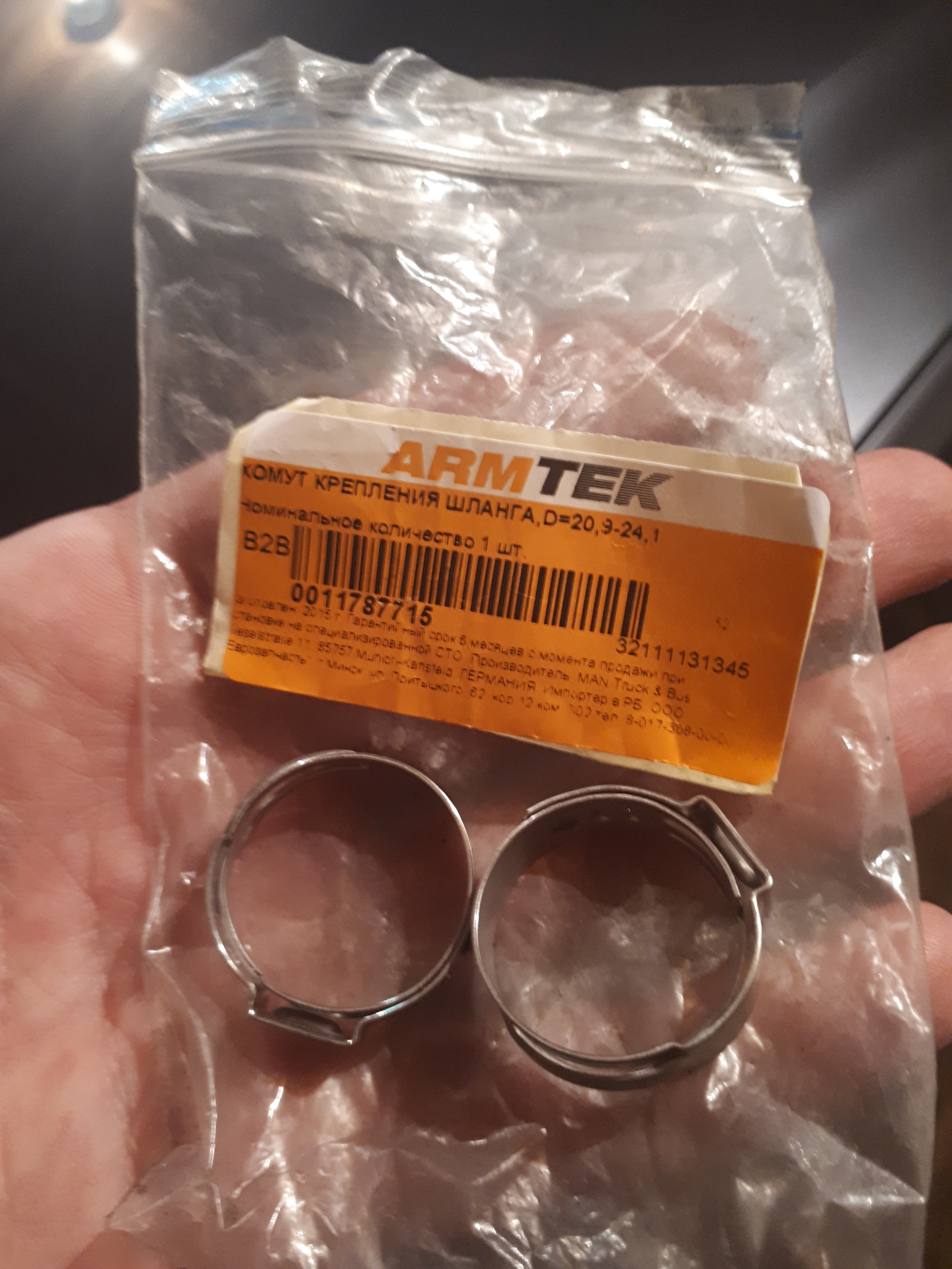 Установил новый шланг. И Зажал оригинальные новые хомуты использовав специальные плоскогубцы.