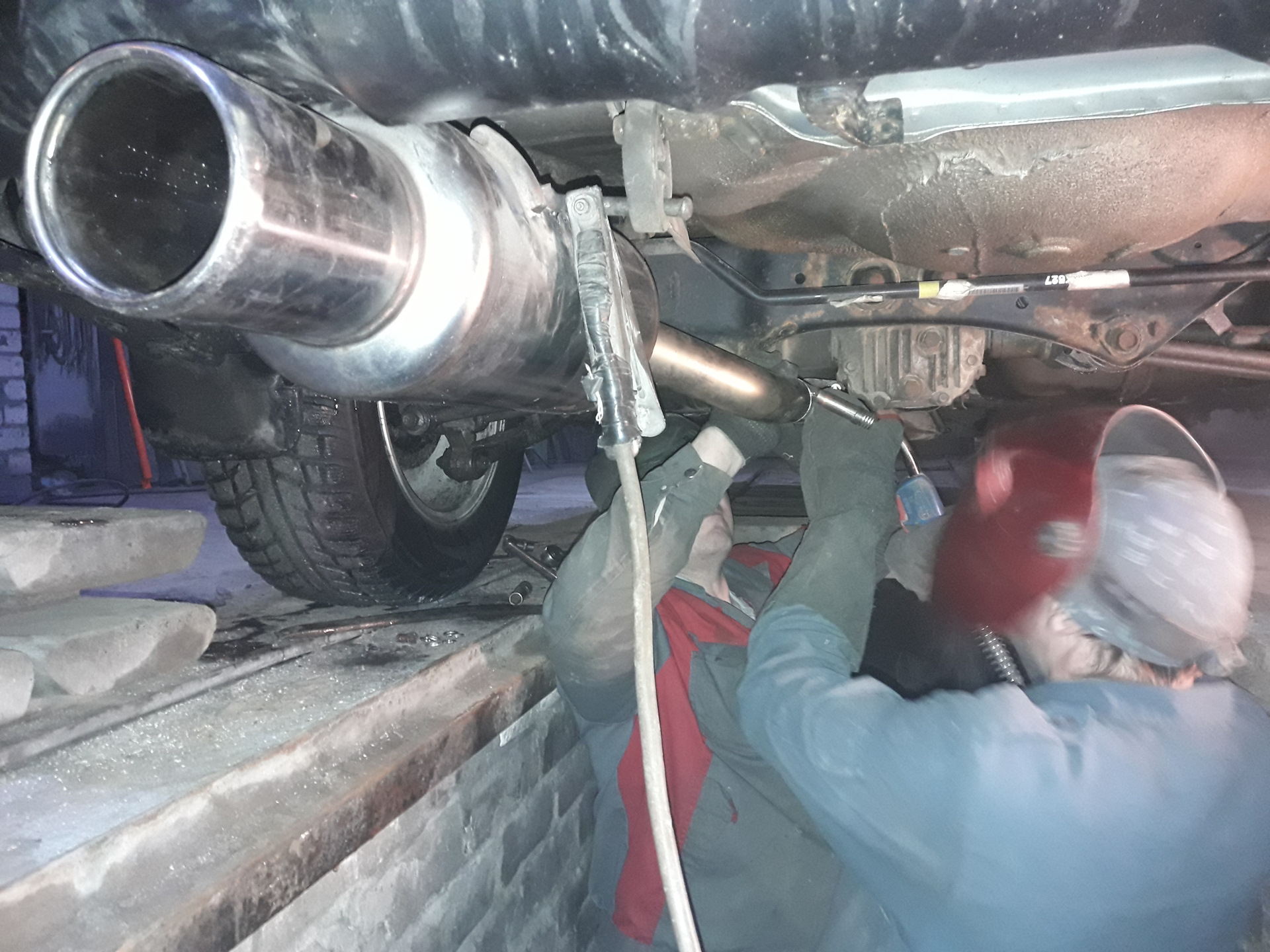 Выбрал время написать сюда про то как я устанавливал банку sti genome. Из экономии денег я решил купить банку от Легаси, сказали только фланец переварить т.к. у Легаси 50 труба, а у Форестера 60 и крепеж поменять. Снял свою стоковую банку и сравнил со stiшной, что бы знать, что меня ждет. Свою сток банку не хотел портить и пришлось искать прямую трубу под мой фланец. Оказывается подходит все от наших Газелей и прокладка, и труба с фланцем. Прокладку купил оригинал (200р.), а трубу (нержавейка) от Газели (1000р.). Так же пришлось помудрить с крепежом под резинки. Несколько раз примеряли банку под машиной, что бы встало все ровно. И вот после 3х часового мучения мы закончили, ура… Завел машину и немного разочаровался, она звучала громче, чем ожидал. Я не люблю громкие банки и специально заказывал genome т.к. до этого слушал у моего субабрата Ratnik368 такую же, только от Форестера. У него она звучит тише, а моя погромче скорее всего из за срезанного фланца т.к. там имеется заужение на вроде воронки. На холостых ее не слышно, проявляет она себя при разгонах. Звук конечно намного приятнее свистящего стока, но сначала было не привычно. Потихоньку привыкаю. В итоге я не много сэкономил и если бы знал, что все так будет, то заказал бы банку от Форестера и без переделок ее воткнул. Так что подумайте, кто хочет этим заморочиться ;) А теперь фото…
