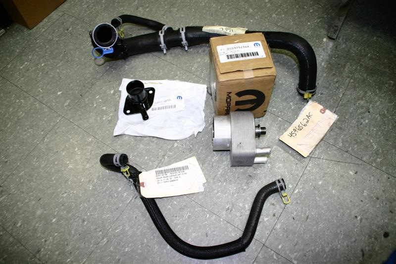 Ещё летом установил маслянный ШТАТНЫЙ теплообменник, который предусмотрен на двигатели HEMI 5,7 и 6,1 в жарких странах, а так же устанавливался на полицейские чарджеры! С 2012 их стали ставить на все HEMI