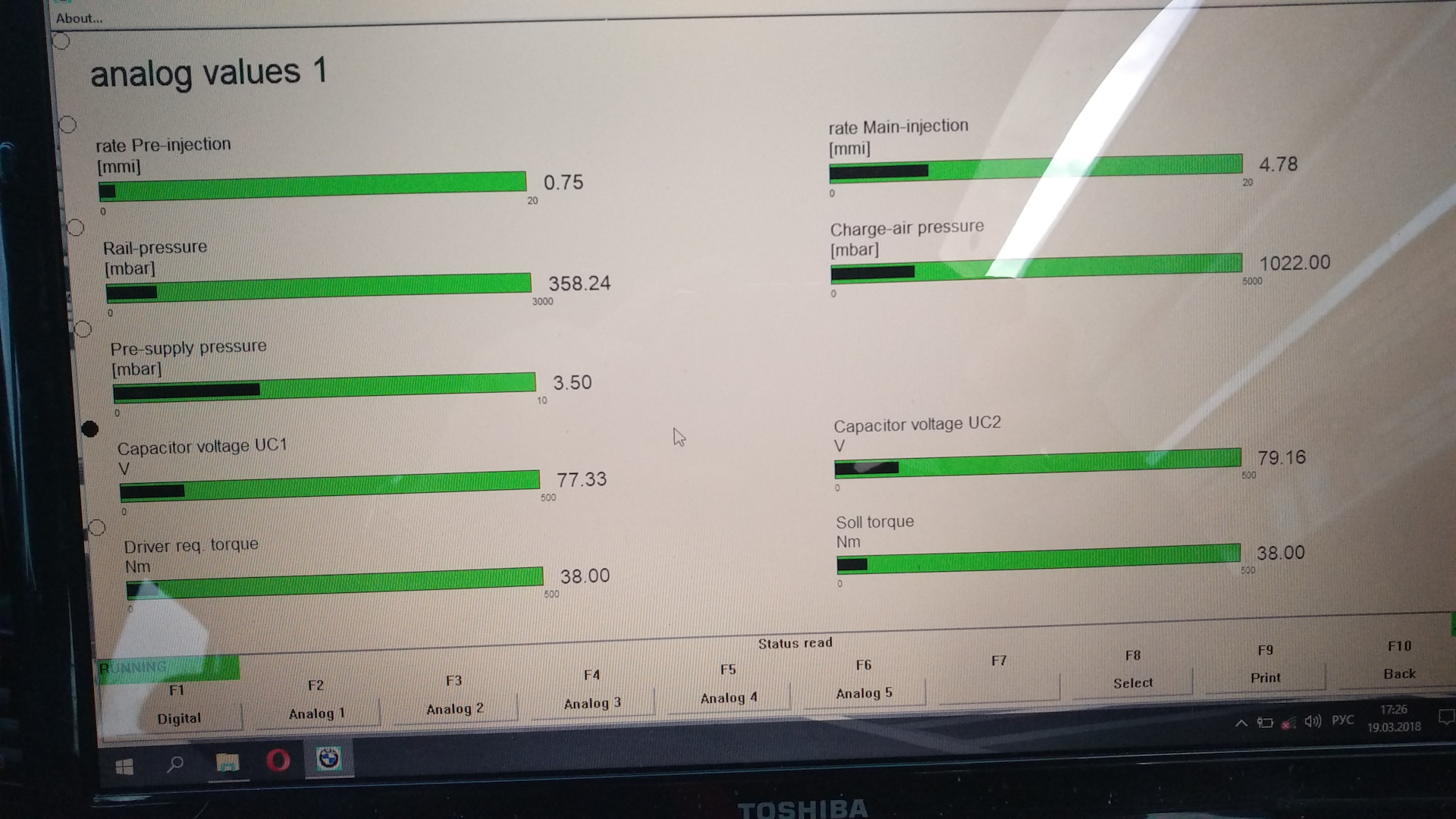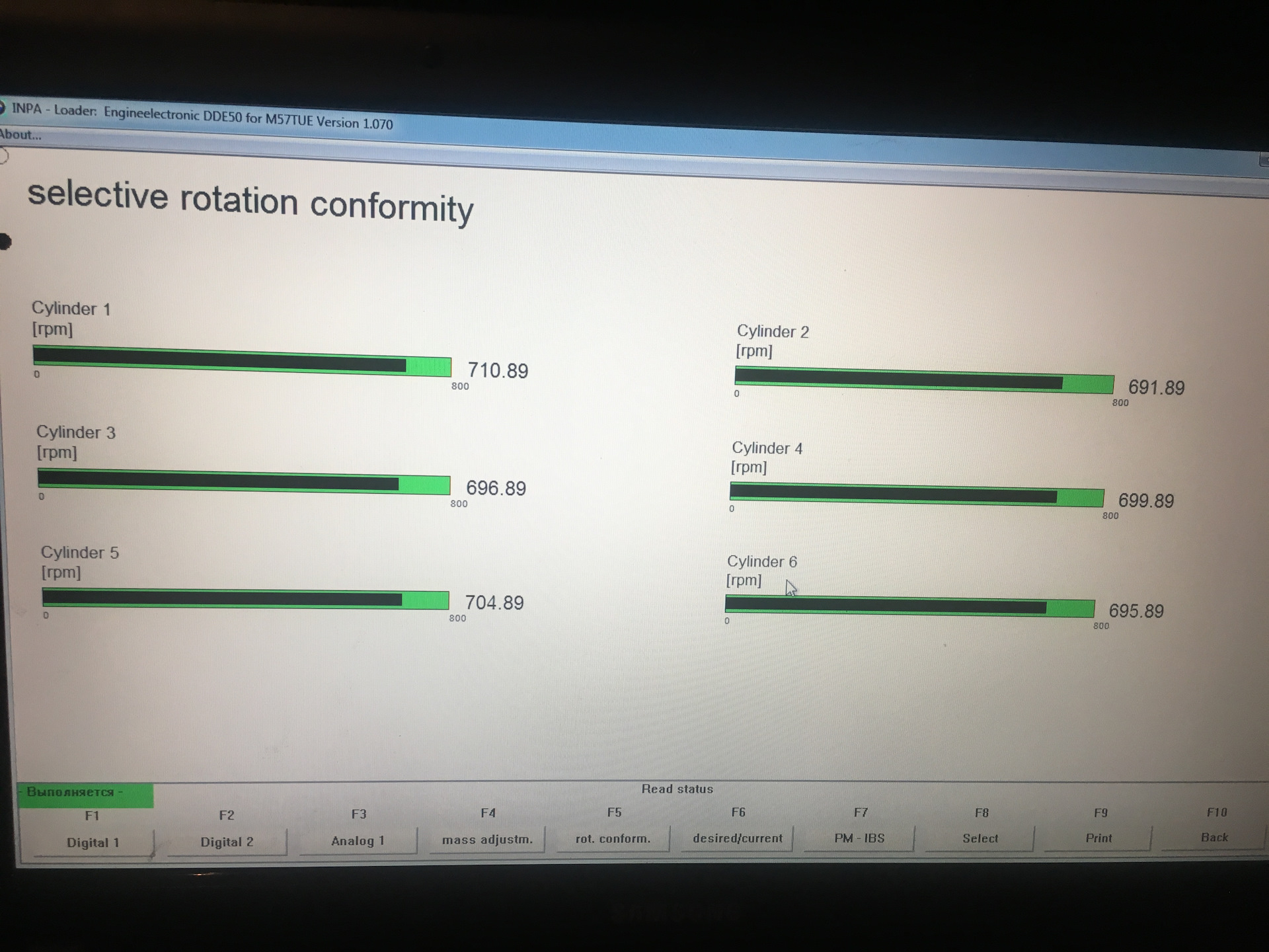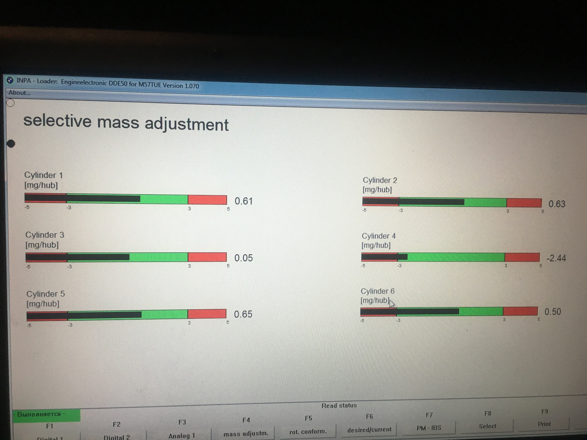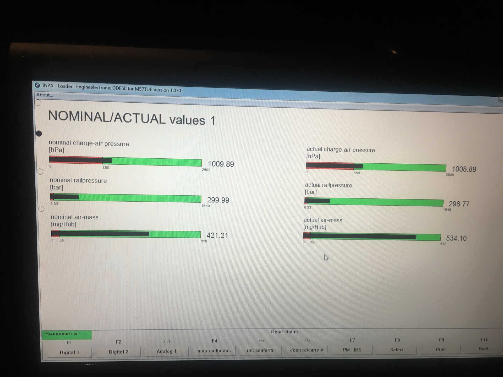 Так же есть еще другой вариант, не столь точный, но более простой, но у Вас по-ходу не сработает: найти с помощью диагностического сканера в данных работы реального времени параметр "Давление подкачивающего насоса" или "Pre-supply pressure". Но как писал выше, в Вашем конфиге INPA этого параметра нет, тут может помочь ISTA-D, благо она так же прекрасно работает с Вашим K-DCAN'ом. Ну или лезть и ковырять конфиги INPA (DIS'ом не пользуюсь ибо он старый и крайне тормозной, того и не советую). Выбор небольшой, если хочется своими силами этот вариант осилить, хотя первый будет предпочтительнее т.к. манометр напрямую и более чутко реагирует на давление нежели чем датчик-АЦП-контроллеры-конвертор-софт.