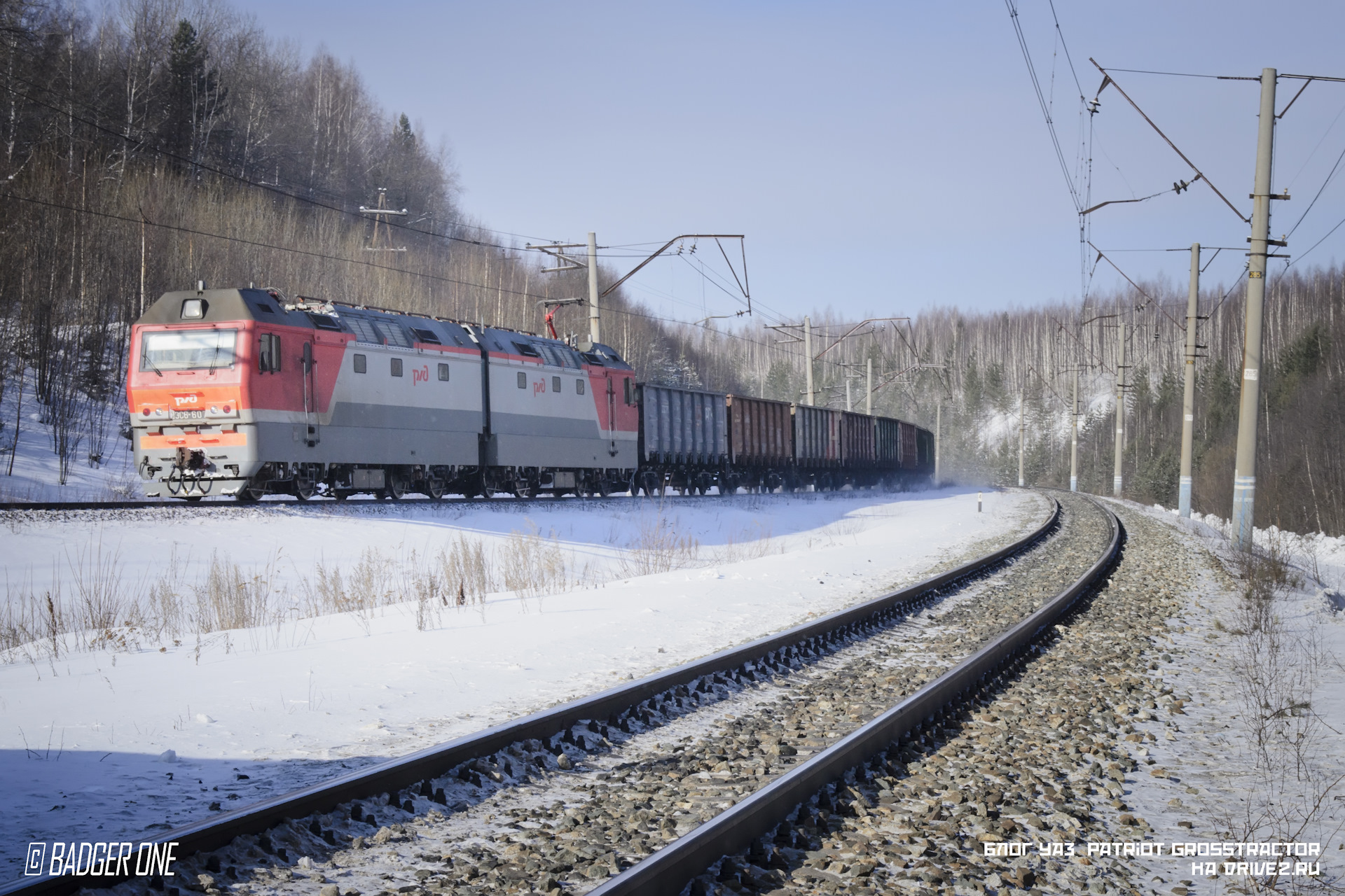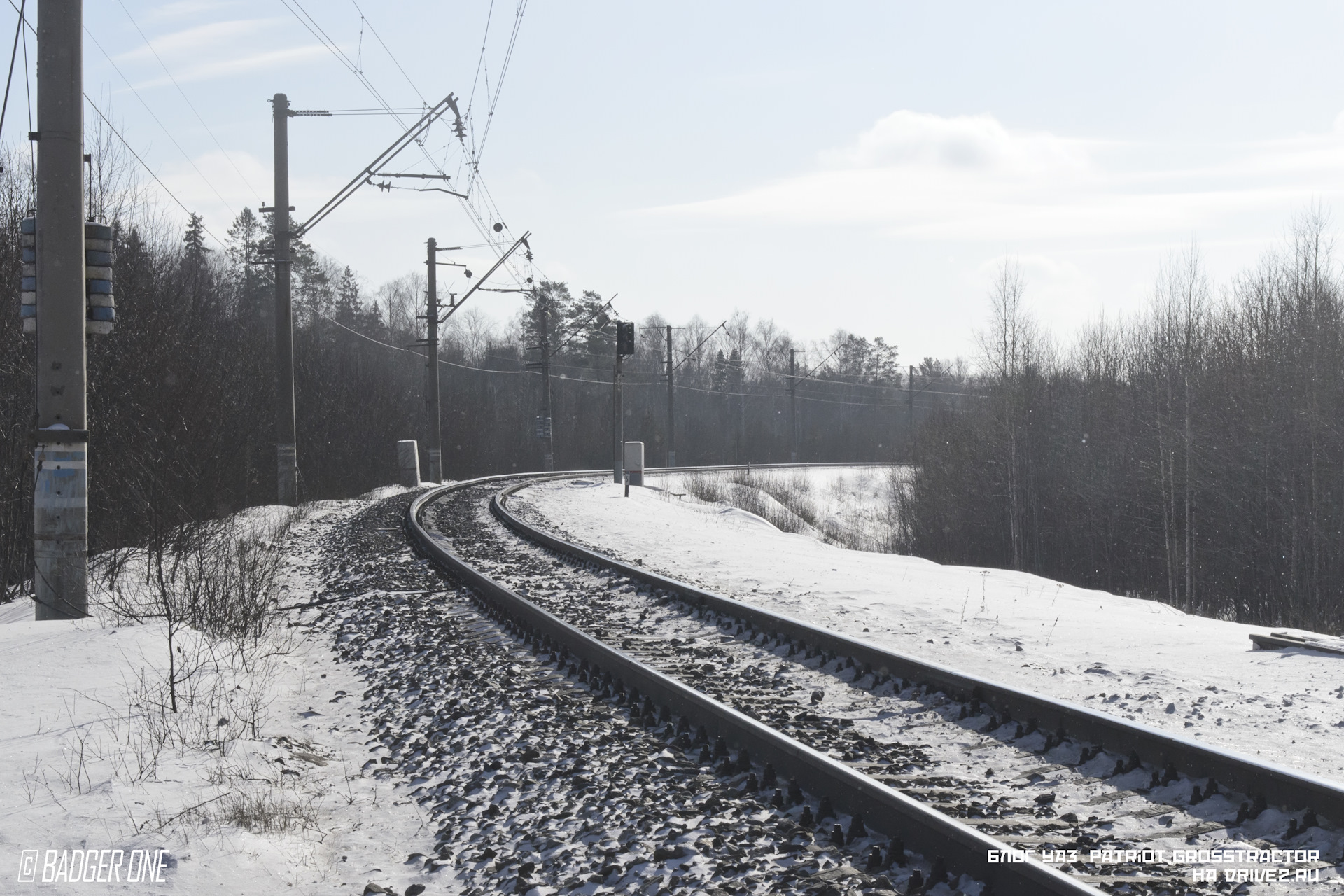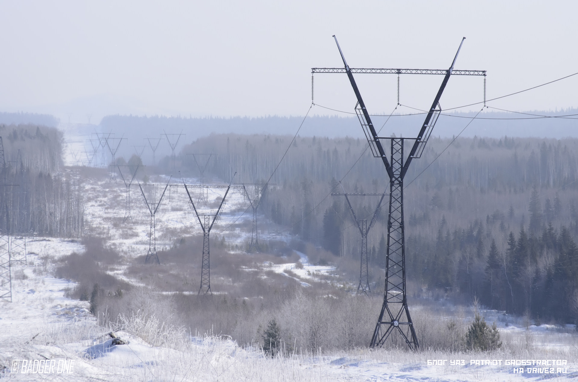 Едем дальше и добираеся до точки 2, где дорога пересекает линию ЛЭП. Гора Волчиха на горизонте практически скрыта дымкой.