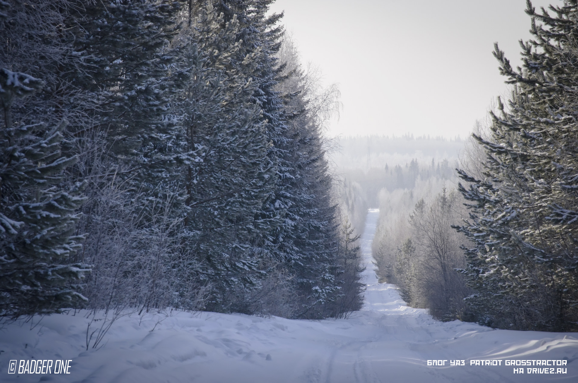 На месте съезда висит табличка, уведомляющая путников о том, что охота без путевок здесь категорически не приветствуется. Дорога начинается с крутого, извилистого и продолжительного подъема на гору Белую. К счастью, встречняк нам не попадается, и мы успешно добираемся до точки 1. Взору предстает длинный и прямой спуск.