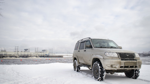 Но мы не привыкли отступать перед трудностями, а потому устремляемся внутрь. На въезде Симбир сломал лед, едем по ступицы в воде. Дальше лед крепче, на него удается заехать. Движемся на пониженной практически на холостых, машина толком не тормозит.