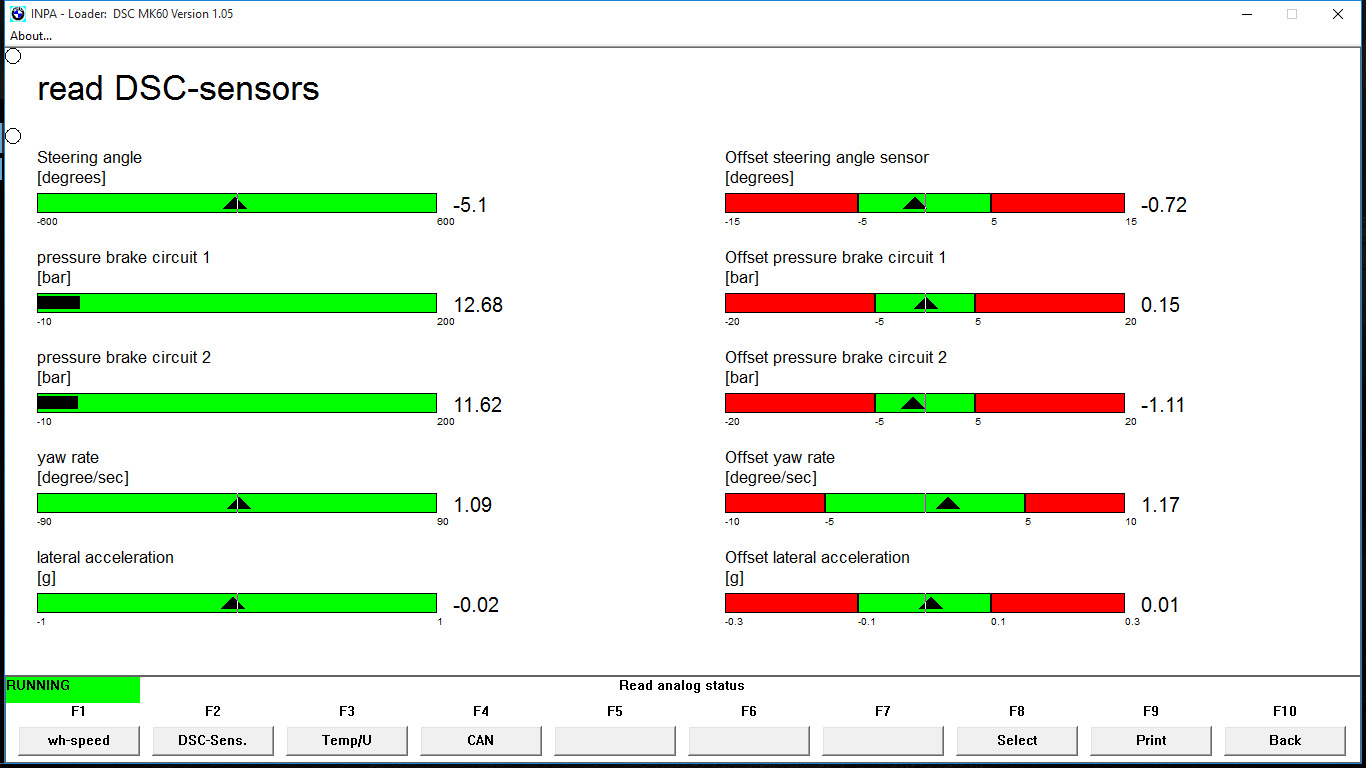 Со вторым датчиком вроде все нормально, если педаль тормоза не нажата, она показывает -1.12 бар. Не знаю, с чем связано отрцательное давление (выясняю), но все стабильно.
