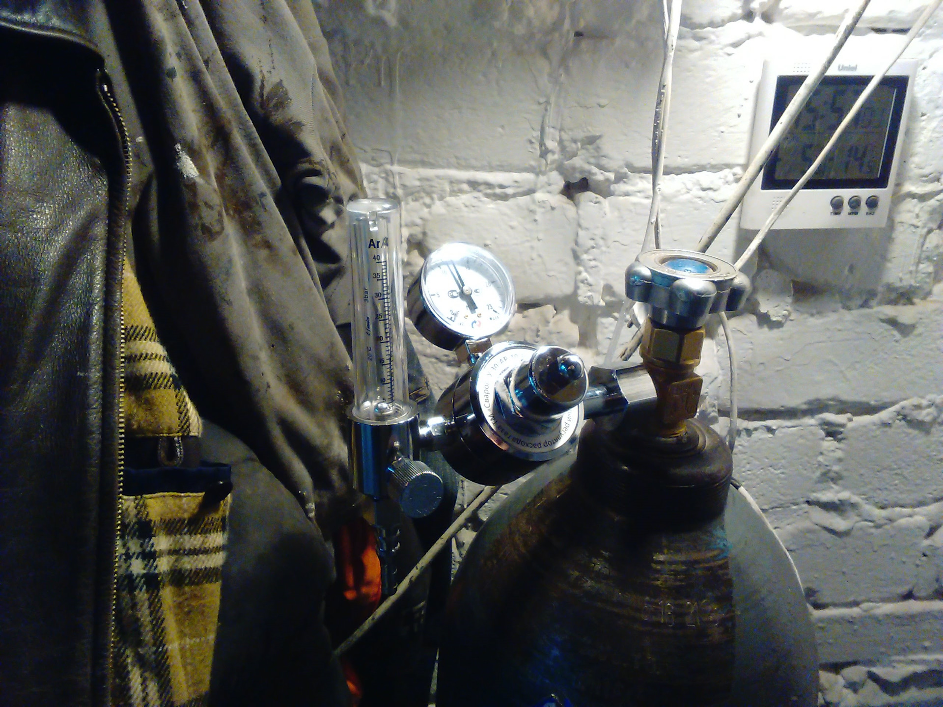 Катушку действительно лучше снизу пустить. Когда заправлял не думал про угол. А чистый аргон, потому что в планах есть варнуть алюминий