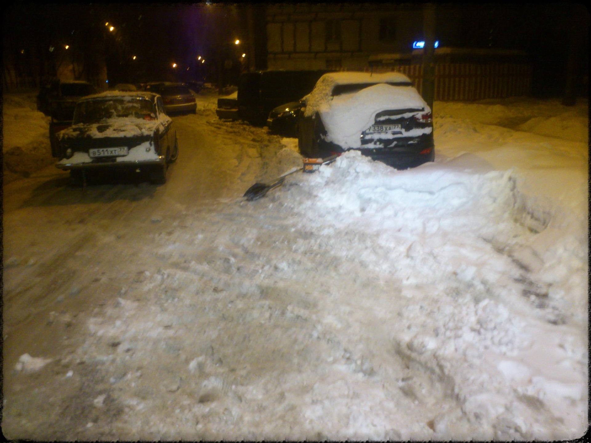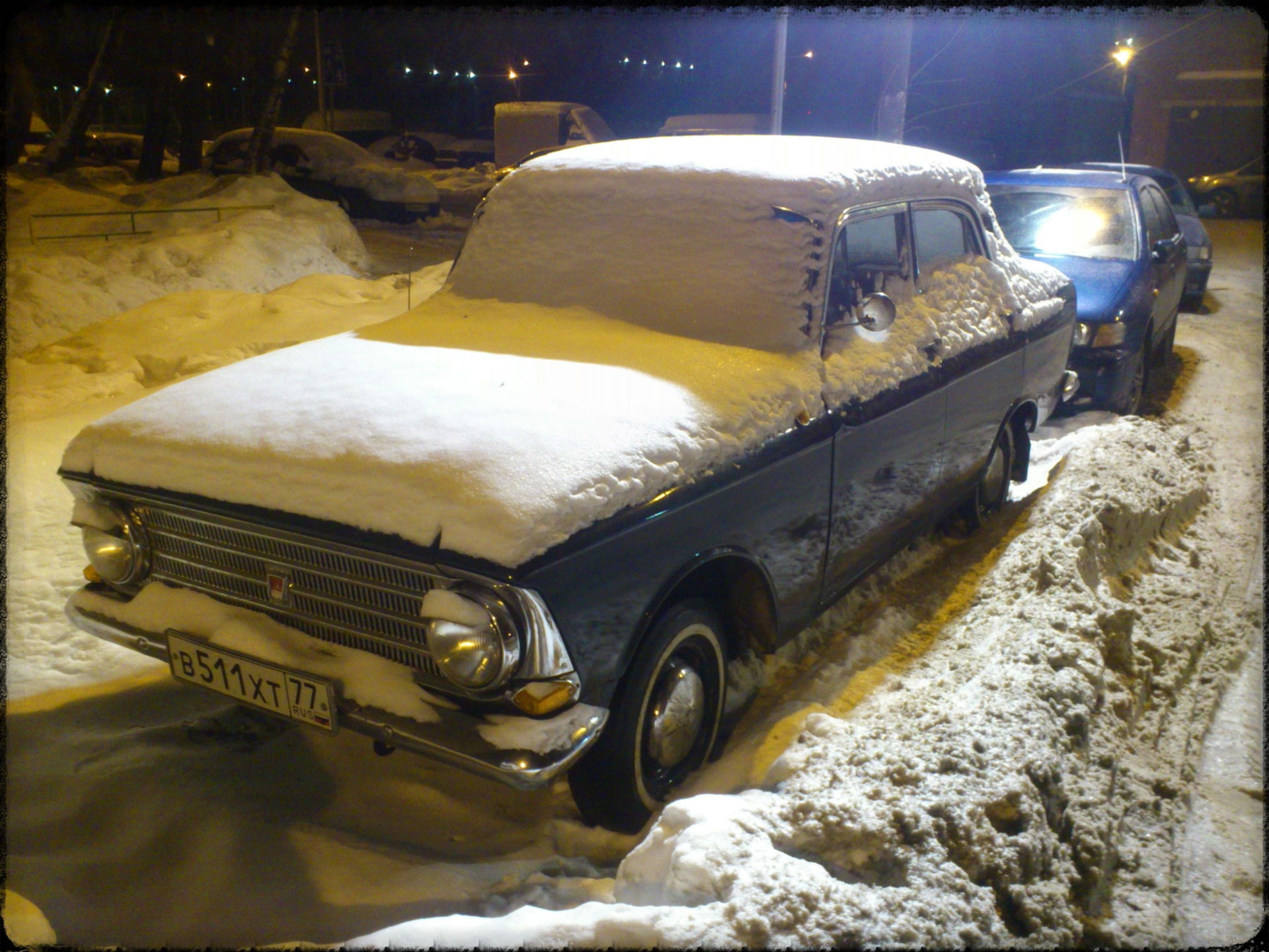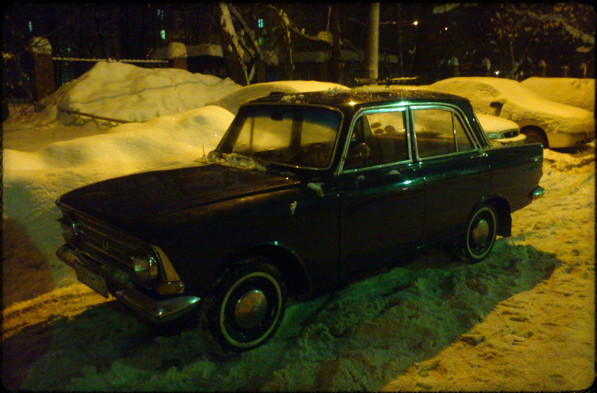 Ладно, я не гордый. Лопату в руки, Славика в помощь и вот, пол часа спустя, Москвич вырывается из снежного плена.