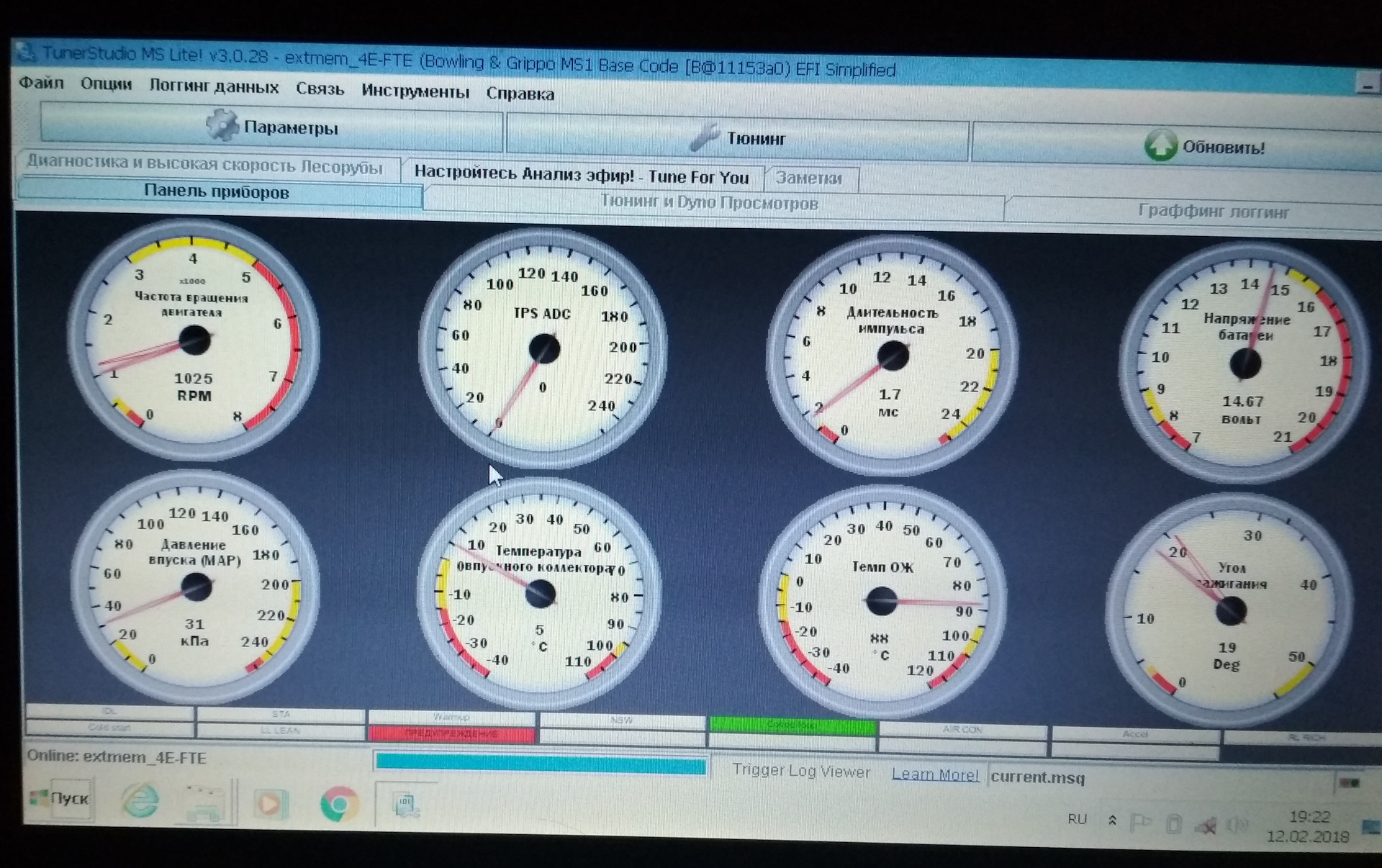 Проверил возможность записи логов с помощью инструмента Тюнер студии, все пишется, логи как раз таки нужны будут в будущем для анализа работы двс.