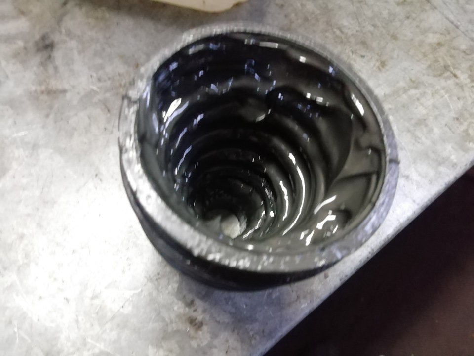Менял одновременно у знакомых, снял для замены подвесного. Пробег 43т.км. Смазка равномерно раскидана по пыльнику.