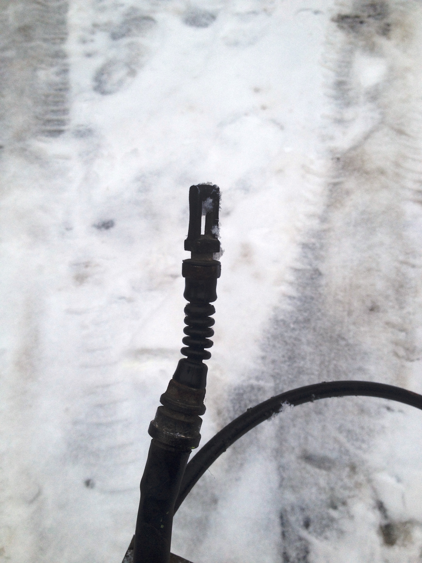 Решил снимать колесо, и вернуть трос в нейтральное положение, и расстроенный пошел за покупками и с мыслями о новом тросе.