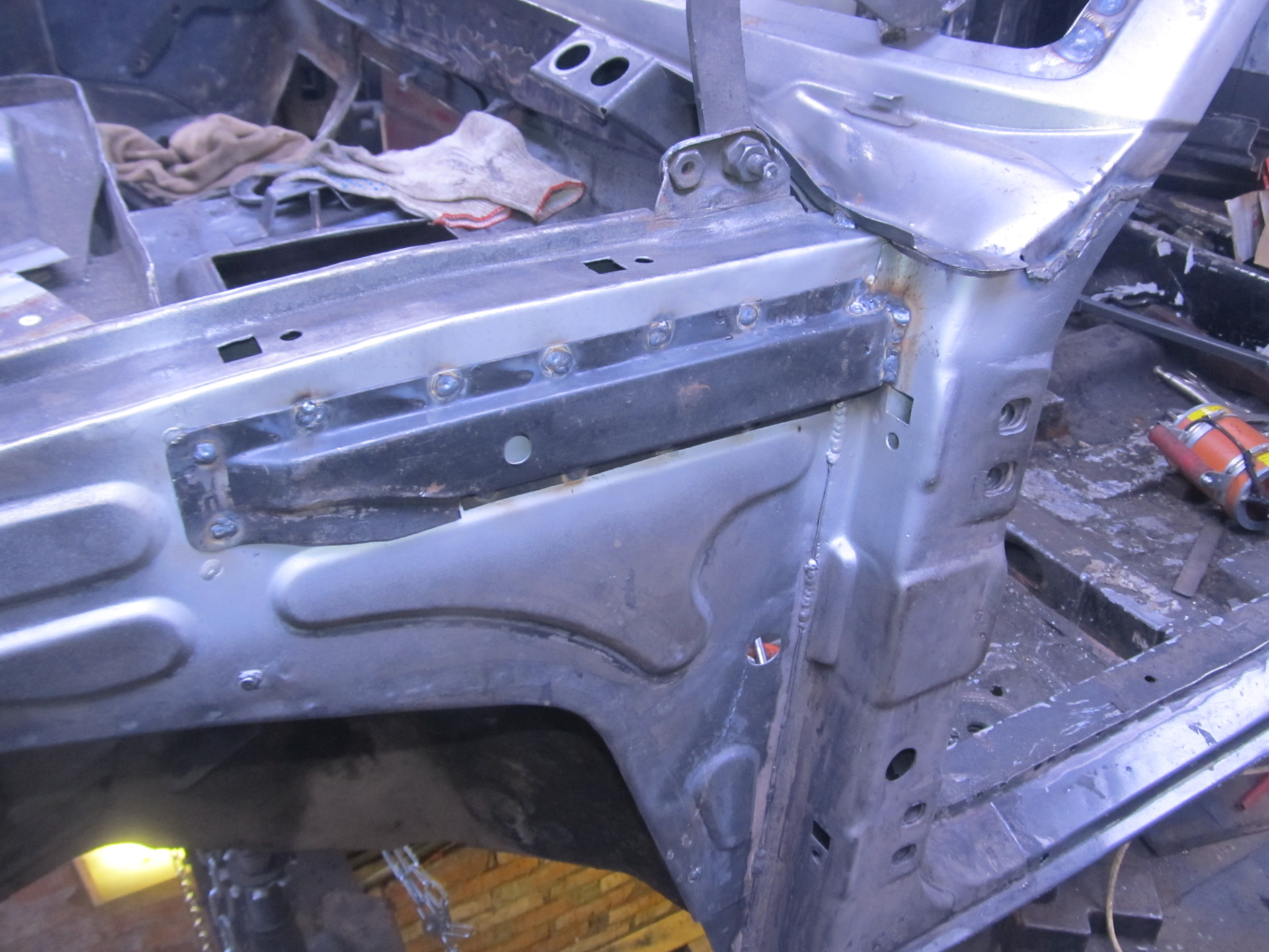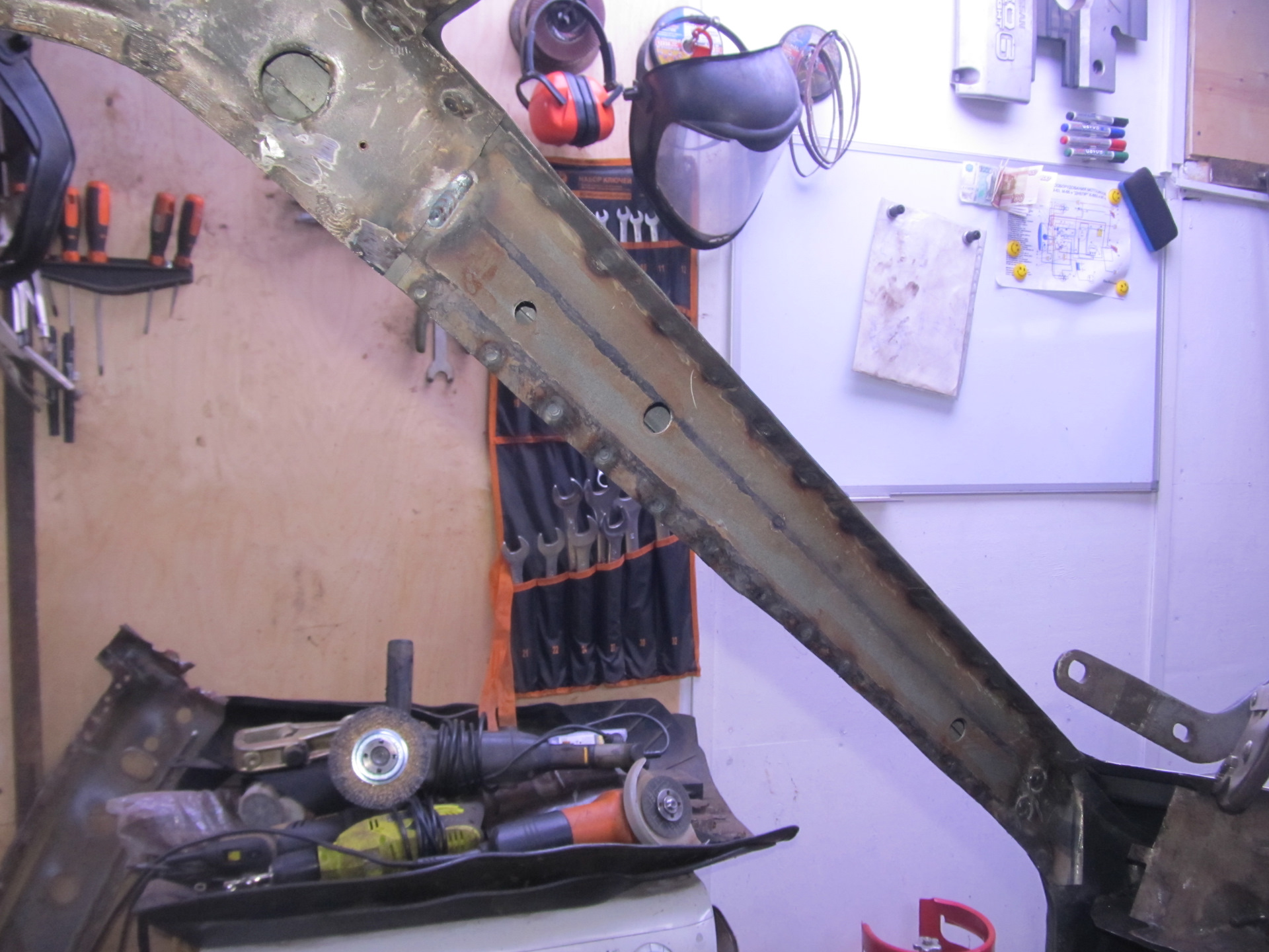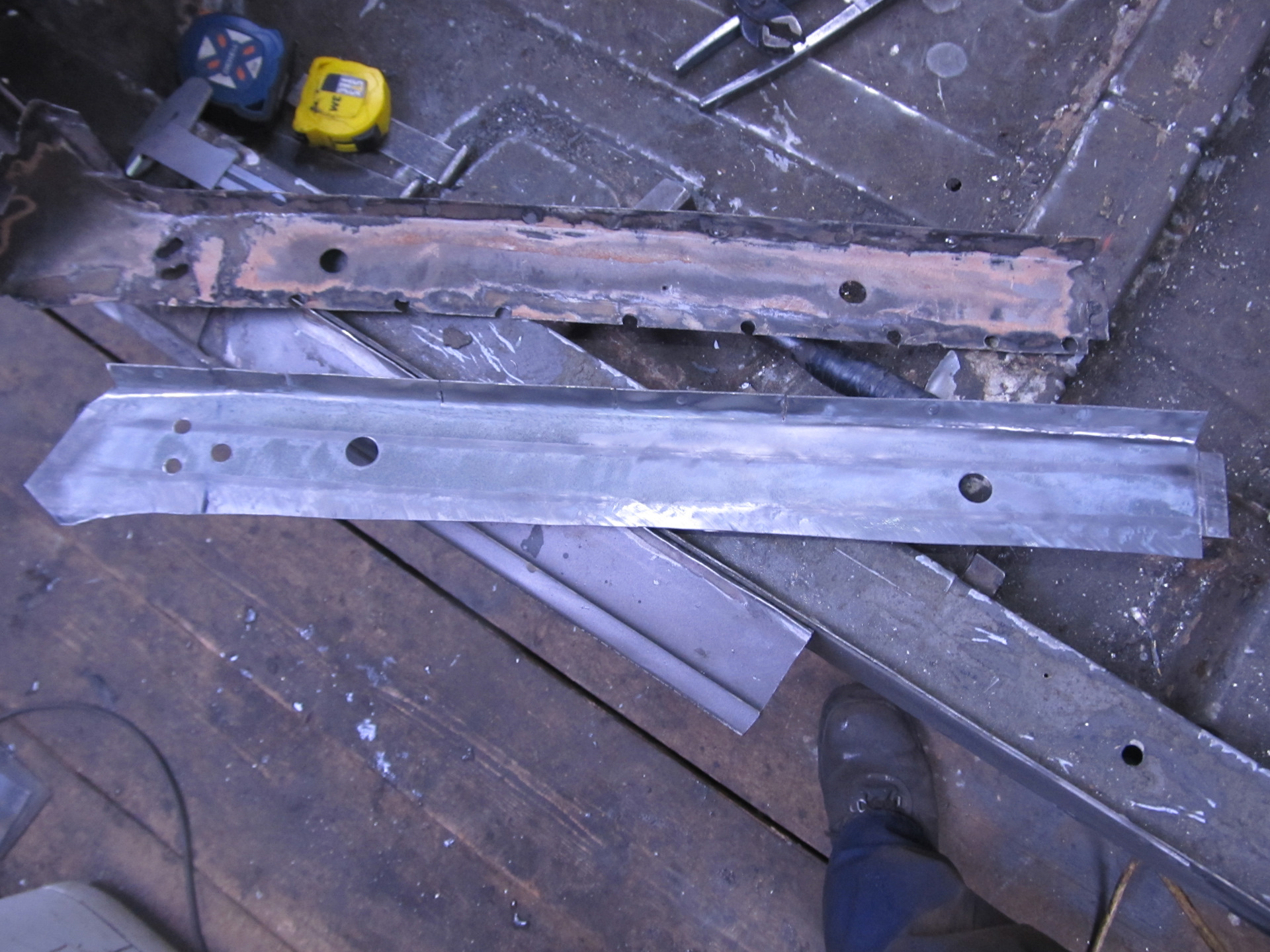 Затем нужно было вваривать внутренние крышки стоек. Их решил изготовить новые, т.к родные в дырочку и из 0.8. Под это дело попался усилитель двери легаси, другой железки 1.0 или 1.2 не нашлось, как то на складе либо 0.8 от москвича, либо 1.5-3мм с рынка. Так эта гадость от легаси была еще и прикалена. Короче с плясками и бубнами сделал такие.
