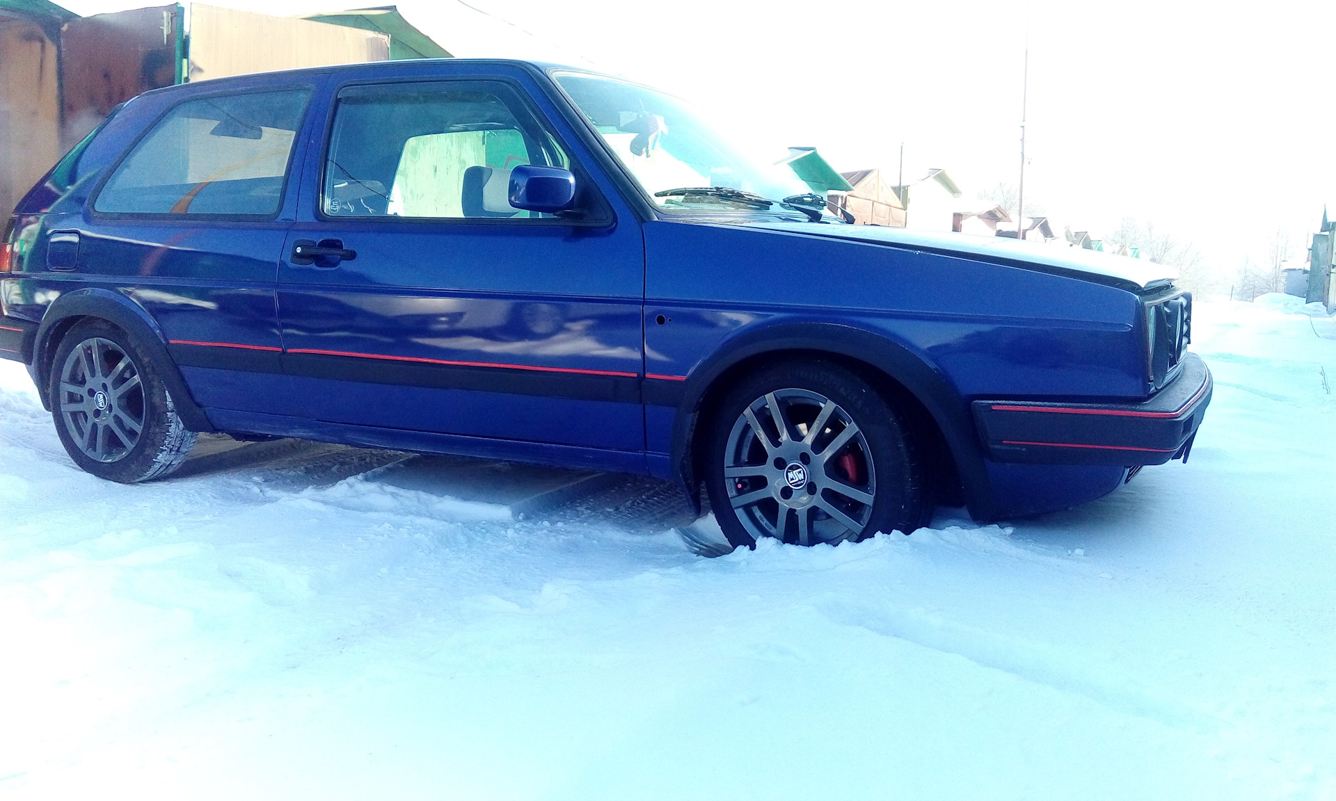 полоски красные в оригинале были чутка бледнее, так при перекрасе решили и их обновить, полоска на бампере после старого дтп пострадала, так пришлось шпаклевать и красить) а чтобы не отличались цвета, задули все в один)) в реале выглядит хорошо))
