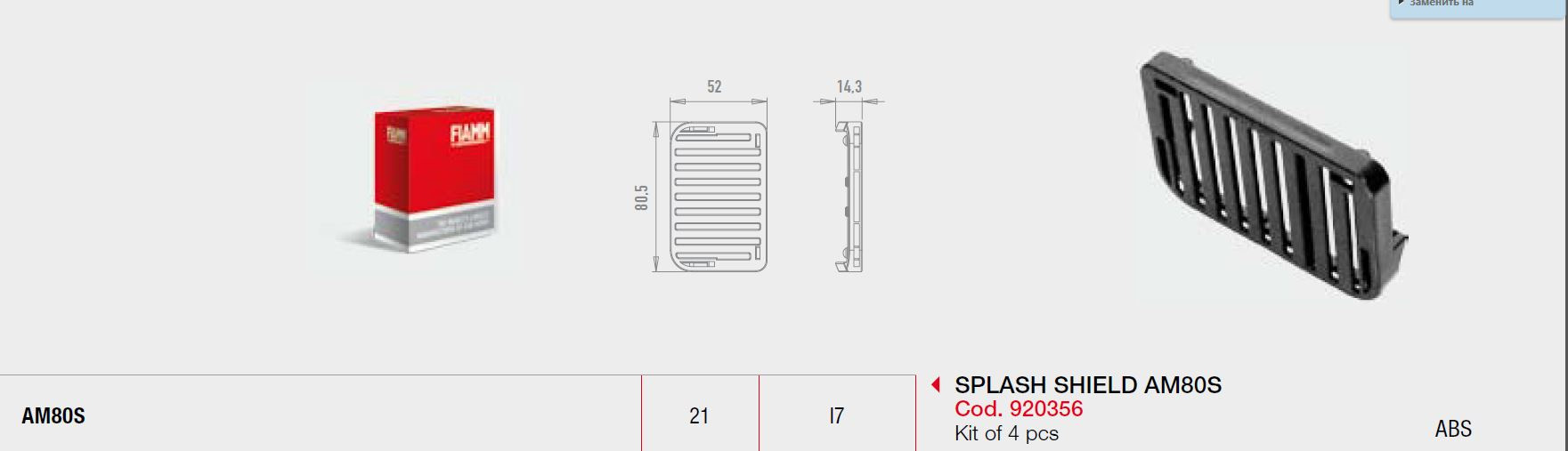 А чуть ниже в каталоге нахожу еще одну интересную плюшку — оригинальная защита от брызг 920356 SPLASH SHIELD for AM80S . В комплекте 4 решетки.