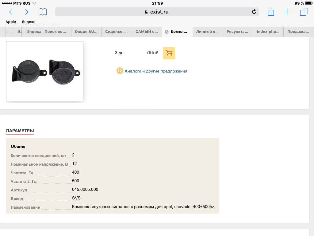 Но покупать их по тем артикулам, которые опубликовал Дима — минимум глупо и бесперспективно, их уже все скупили (как потом выяснилось по информации от Юры Outlaw92 я думал совершенно верно — на четырех клаксонах висели в отказе 27 человек).