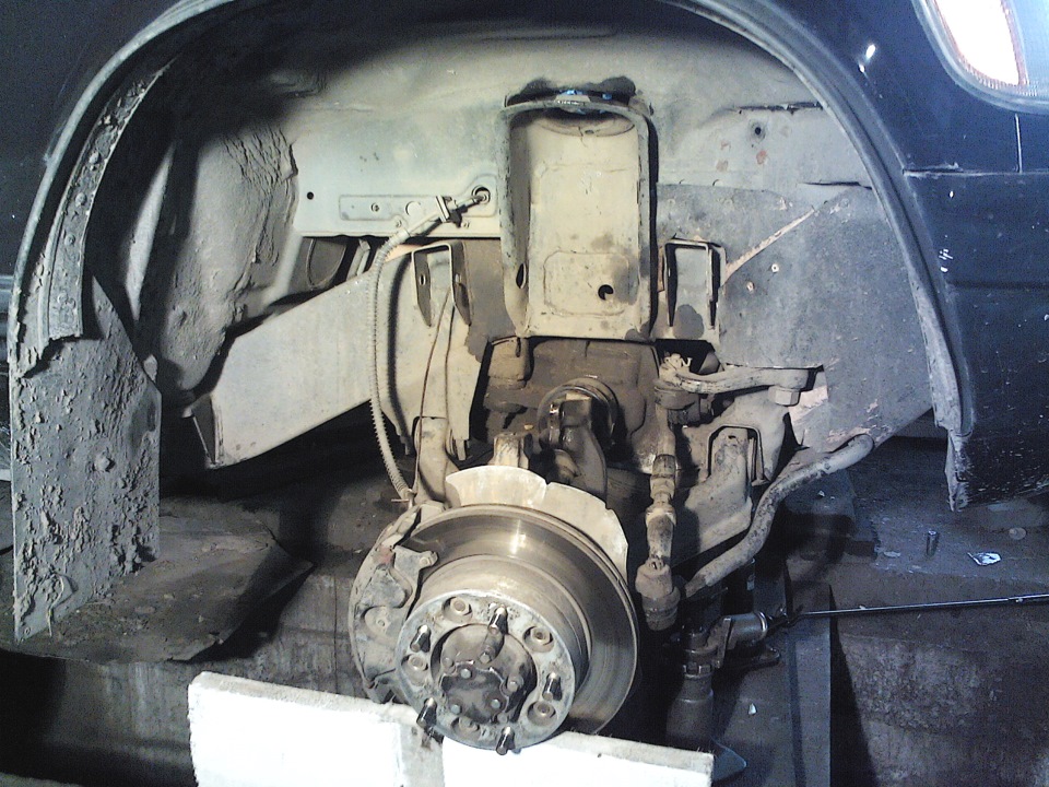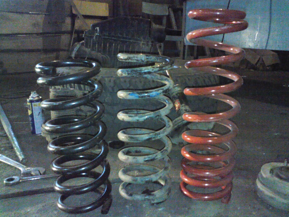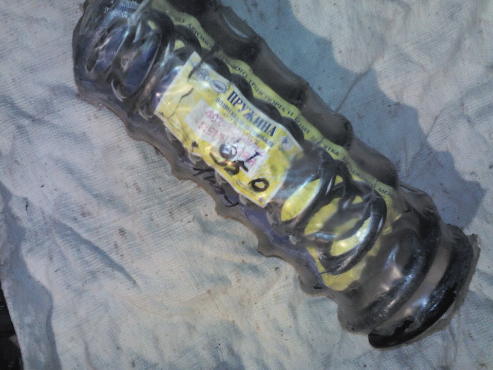 .(ну если честно, то в нашем "сельпо" только такие и оказались в продаже), продавцы как на спасителя на меня посмотрели, так как те пружины у них на складе уже пару лет валялись и никто не покупал их, а тут я), пыльники и отбойники. Выбрал день и отменил все планы для того, чтобы сменить пружины, пыльники и отбойники амортизаторов, промучился четыре часа в одну дудку(как в дальнейшем оказалось- зря), собрал правую сторону подвески, снял с домкрата, и что я вижу: ?!правая сторона стала ещё ниже, чем на просевших родных пружинах.