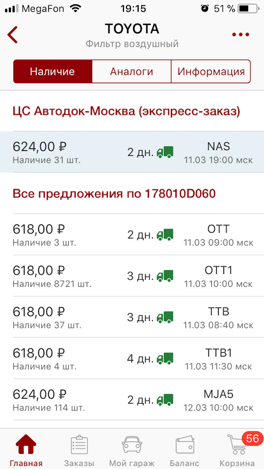 Я второй и взял в этот раз, потому что это центральный склад автодока. Ну и цена ведь еще зависит от того какой у тебя Опт!