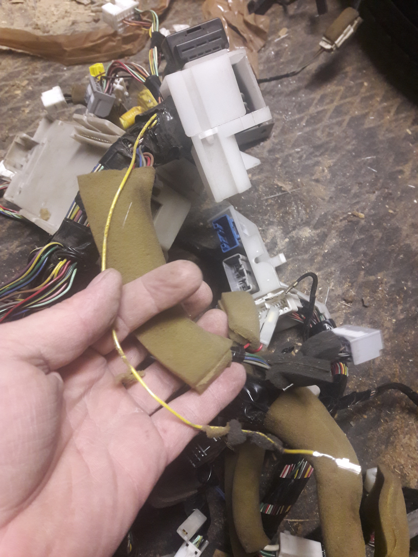 Пока подсыхала эпоксидка выплел из цедевской салонной косы штатные провода для подключения приводов зеркал и кнопки