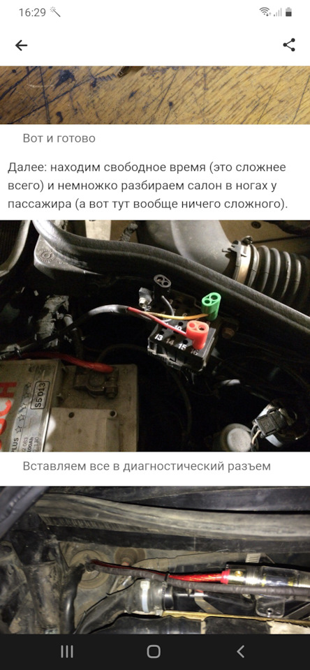 Приветствую, подскажи пожалуйста, у меня 16 пин масса, 8 плюс и 1 это доп плюс, это как я втыкаю пины для самодиагностики, у тебя на фото наоборот, мне как подключить тогда, как я тебе написал или как у тебя на фото ?