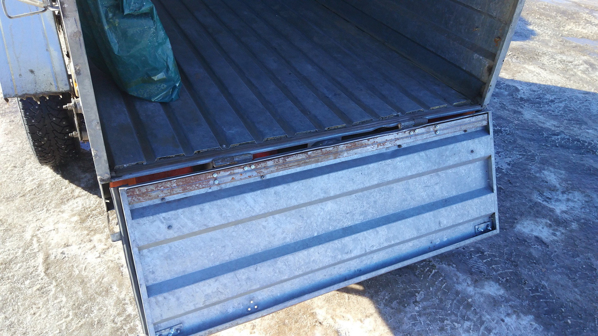 В деревне немного прокачали прицеп — там где петли и засовы держались на сварке — усилили болтами, откидной борт усилили проф трубой и закрепили болтами. Заменил петли для замка и закрепил их тоже болтами. Заменил уплотнительные резинки, которые закрывали щели откидного борта (подошли от крышки багажника ВАЗ 2110) еще и на верхнюю крышку хватило.