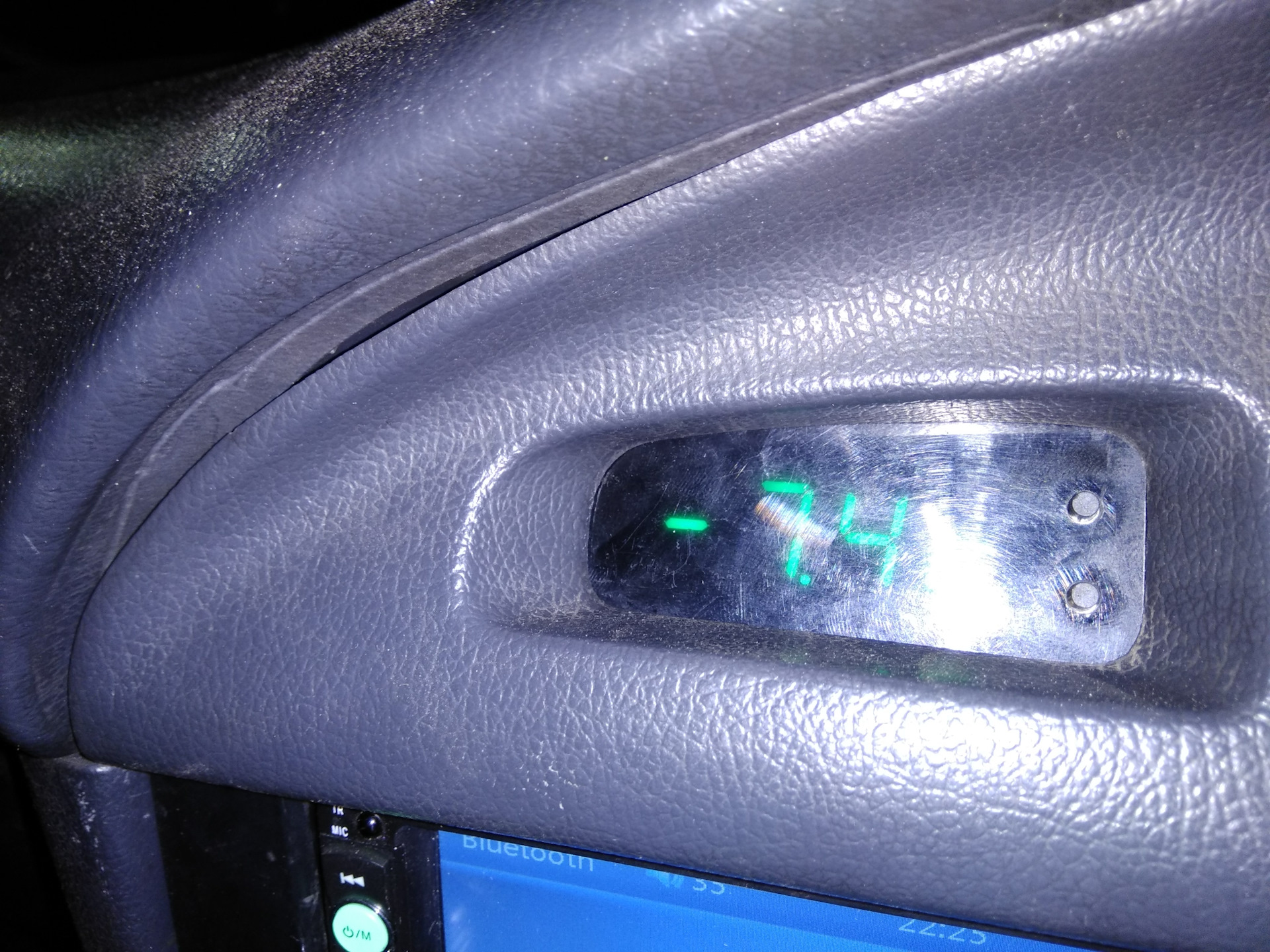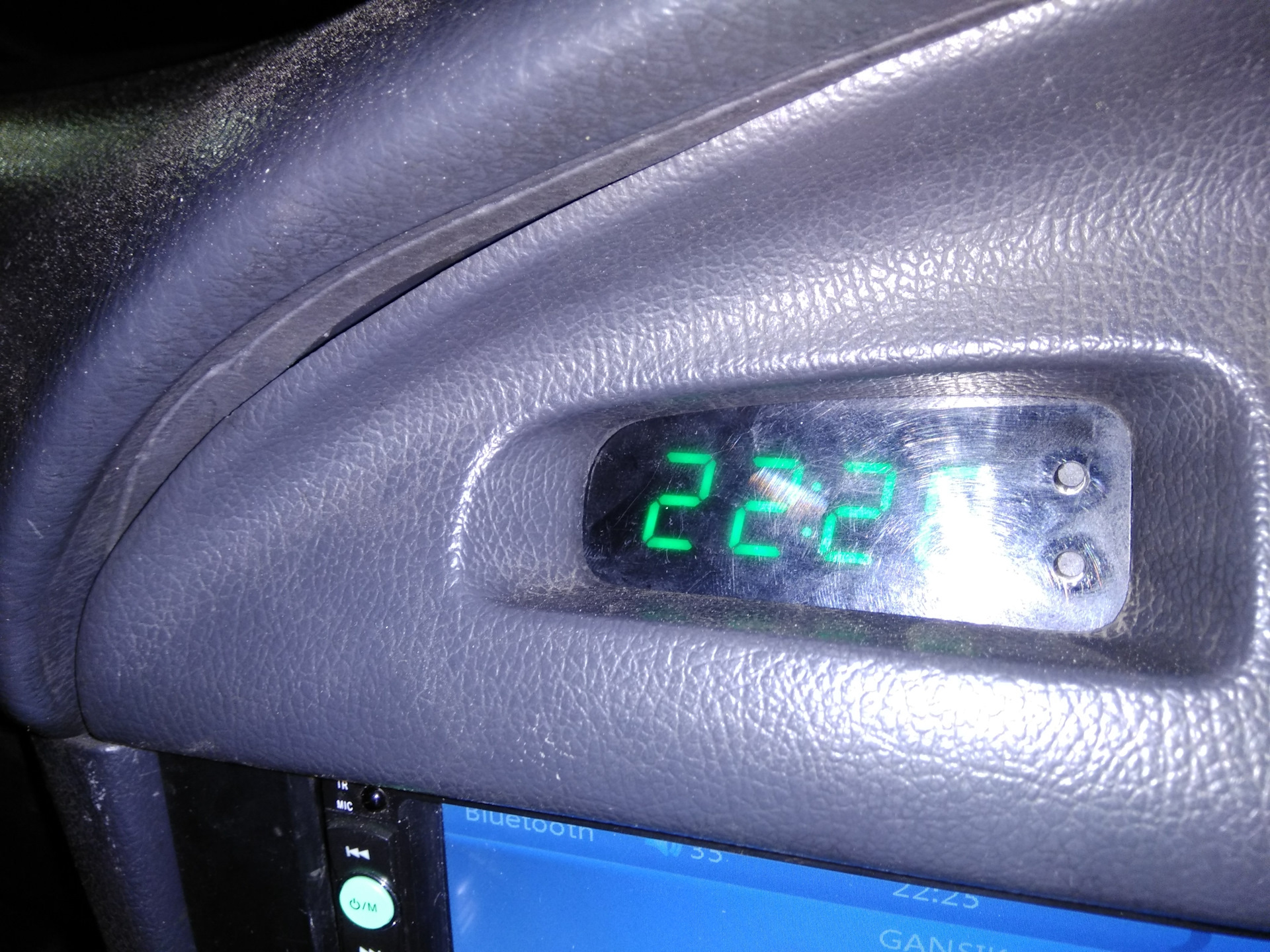 Купил на Али экспресс часы 3 в одном там вольтметр, датчик температуры и часы.А есть ещё и дата.Слепил под них коробочку накрыл орг стеклом и вывел кнопки в орг стекло.датчик tº выпаял и вывел на улицу. стекло притонировал лаком ато сильно яркие. в общем получилось супер!Мне нравится.