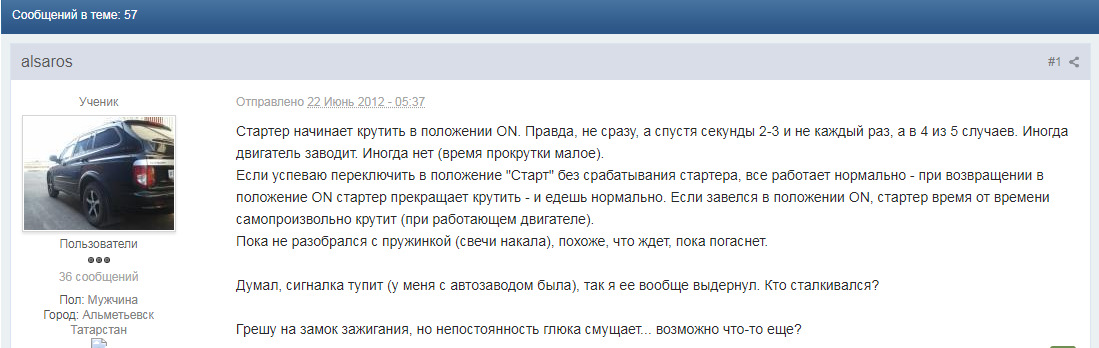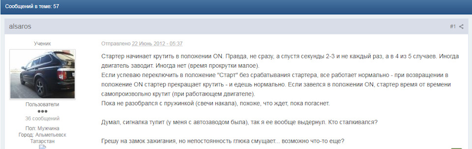 Смотрел, причем и на форумах всех енгов тоже …ваш случай и второй — на пробеге за 200 тыс у товарища на драйве .и все.остальные поломки замков зажигания вылезают в поиске у опелей, шевроле, тойот лендкрузеров и тд.каждый может сам убедиться, набрав в поиске на драйве "кайрон сломался замок зажигания"