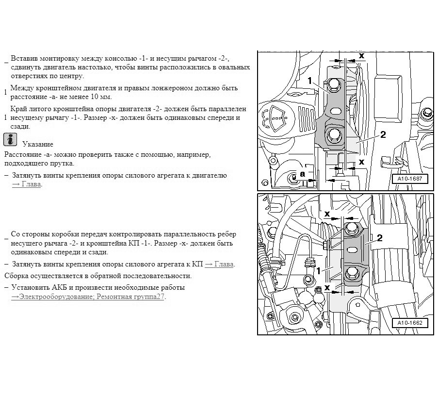 Ставим новую на место и сначала крепим ее к кузову 4 новыми болтами. Затем двигая кпп с мотором выставляем и закрепляем подвижную часть подушки согласно мануалу.