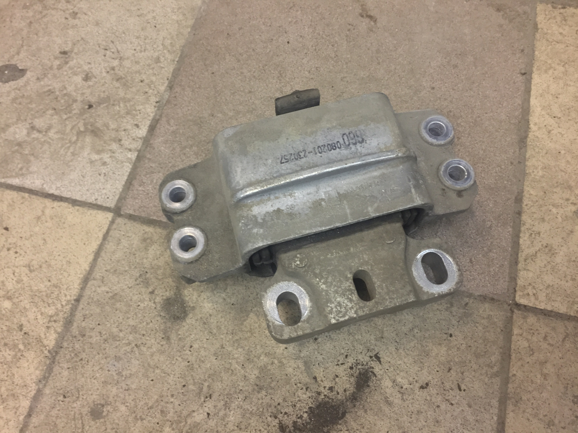 Затем лезем под авто, снимаем защиту и поддомкрачиваем коробку до того часть подушки не займет ровное горизонтальное положение. После этого откручиваем болты крепления к кпп их 2 штуки, а затем 4 болта крепления к кузову.