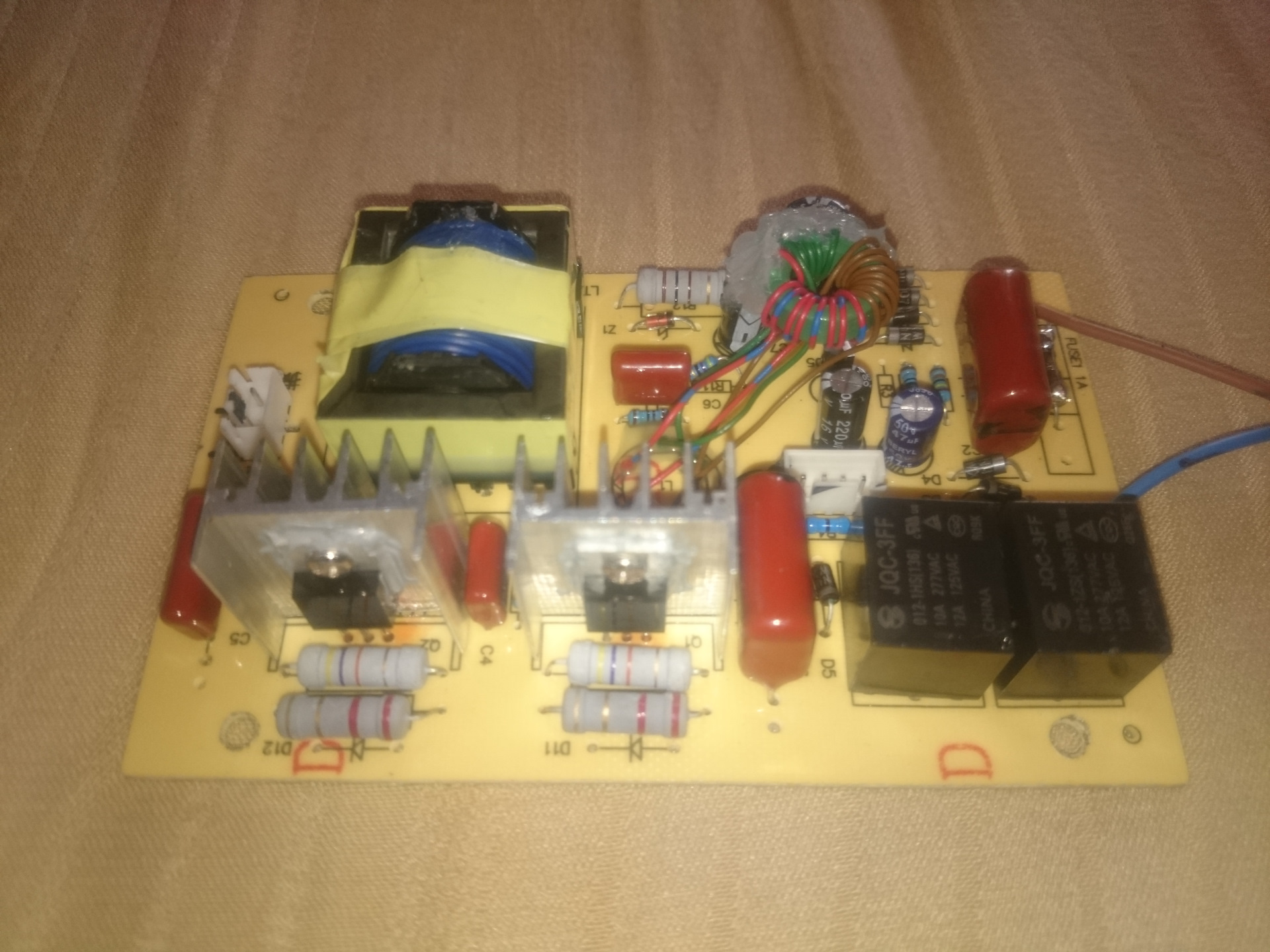 Разобрал ванночку дотронулся до трансформатора и обжег палец. он был градусов 90 и есче были раскалены диоды на радиаторах — посмотрев их ближе увидел что они были прикручены прост отак без всякой термопасты к радиаторам — открутил и нанес на них термопласту (GD900) — дополнительно пропаял плату усилив дорожки и начал думать как бороться с очень высокой температурой внутри ванны.