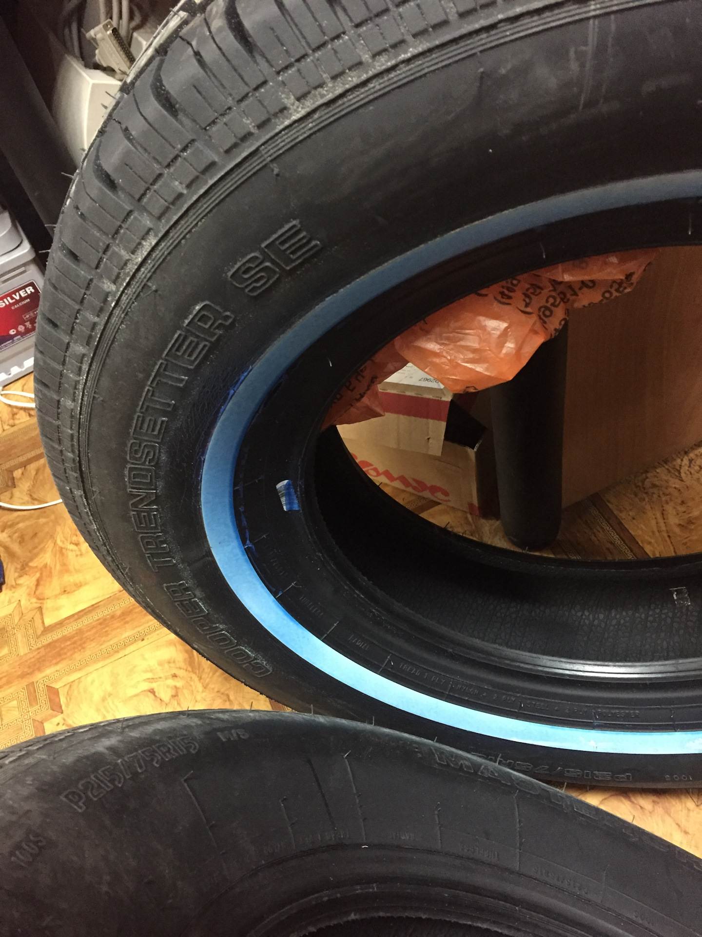 А почему на шинах полоса голубая ? или она в плёнке защитной какой-то ?