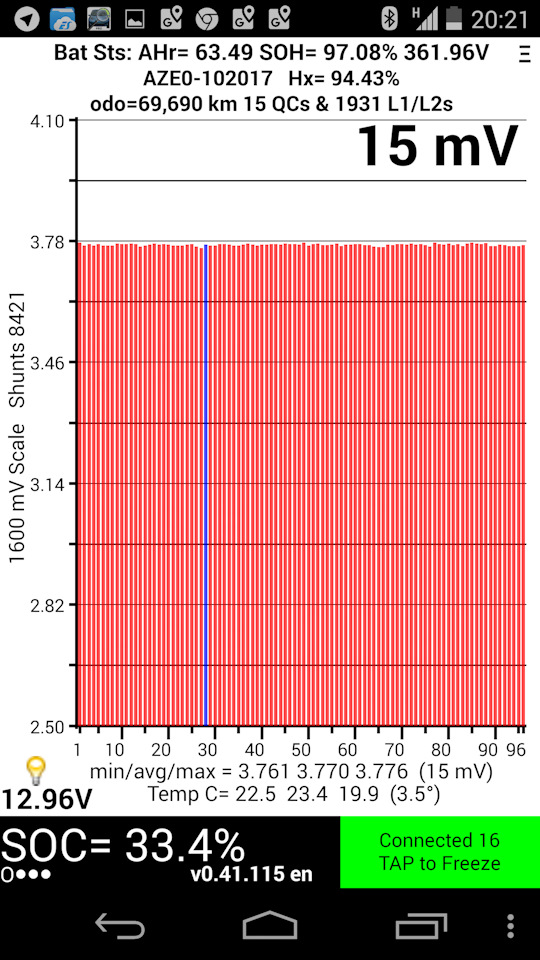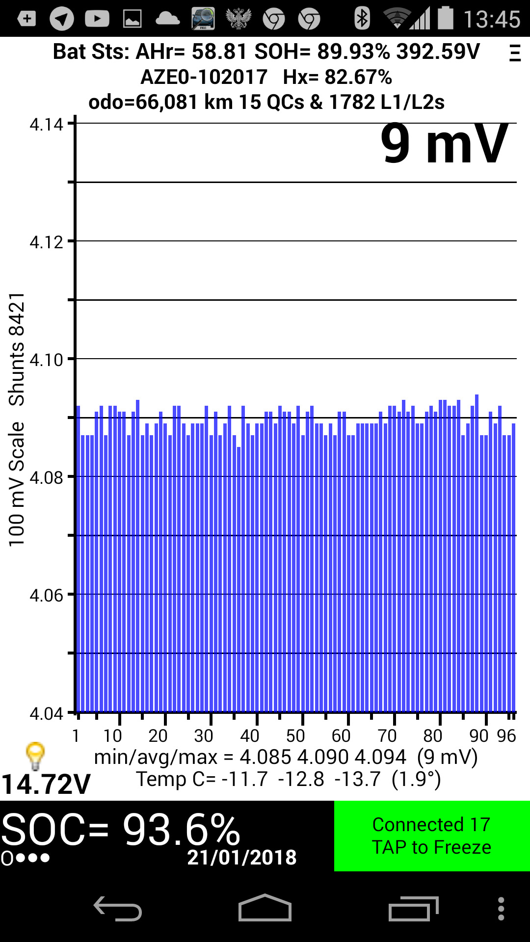 3. Дополнительно. Идеален проезд по холмистой местности. Чем длиннее маршрут тем точнее изменения показателей. Т.е. в гору разряжаемся, с горы заряжаемся. Видимо аналогичный вариант от быстрой зарядки 20-30 кВт. Батарея после зимы нуждается в бодрости.