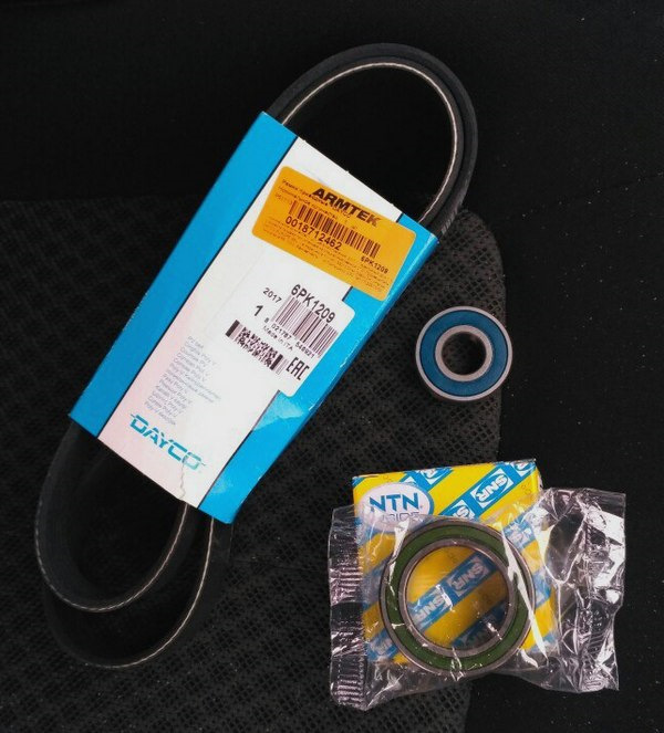 В процессе выполнения некоторых ремонтных работ, были выявлены изрядный износ подшипника шкива (муфты) компрессора кондиционера, а так же небольшой износ подшипника натяжного ролика.