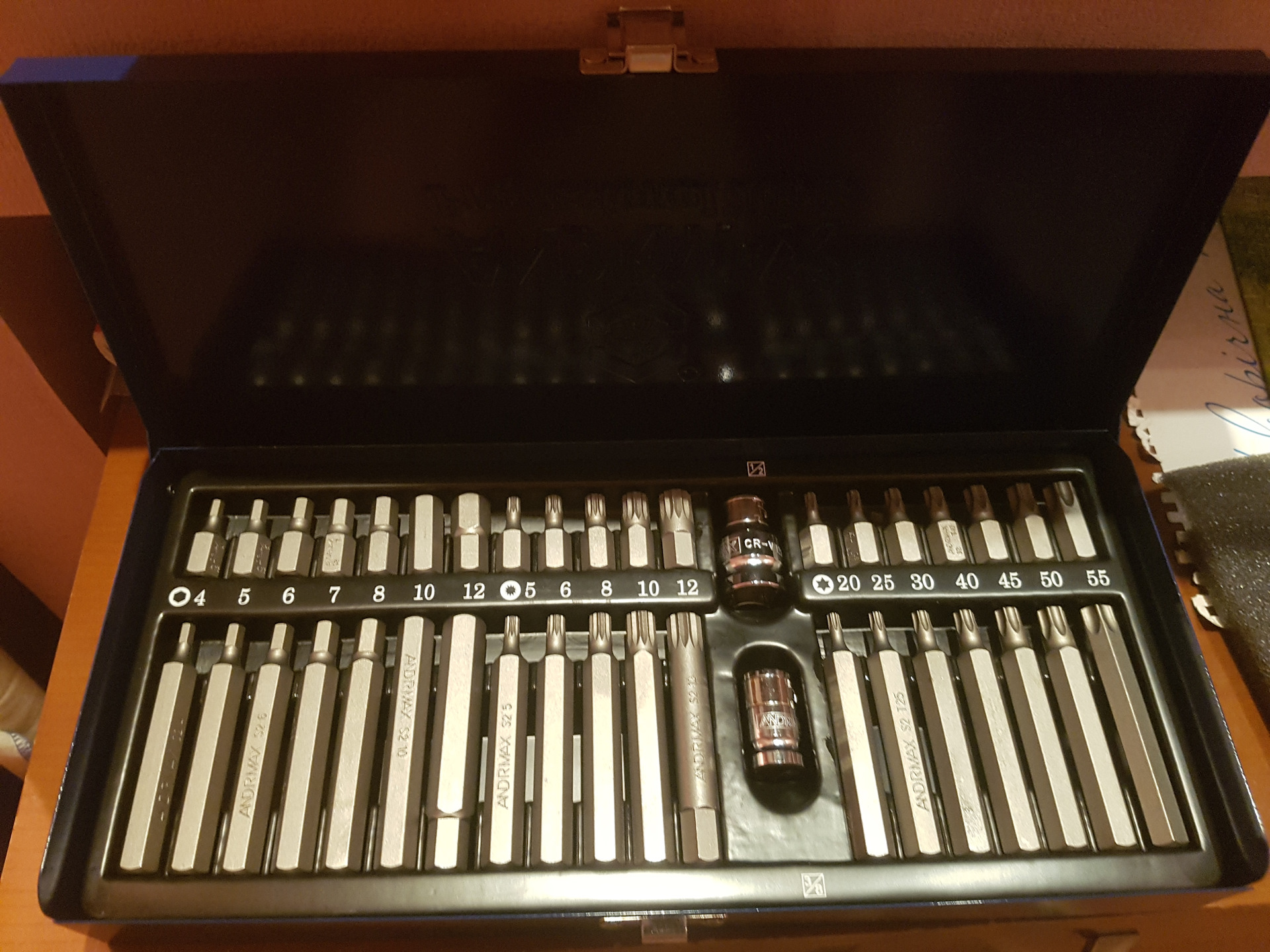И сделал себе приятное, купил еще немного инструмента. Так как ШРУСы у меня прикручены ВАГовскими болтами, а там не шестигранник. И чтоб не мучатся, они мне помогут.