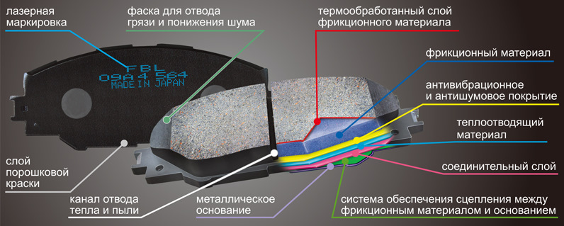 Что есть колодка? По виду кусок чего-то на подложке и оно тормозит. Окей. Впрочем больше нам знать и не надо. Различия между органическими/металокерамичскими/керамическими — не нужны большинству. Про последние пацаны "в теме" и сами кого хочешь научат, а первые две для обывателя не сильно различаются )