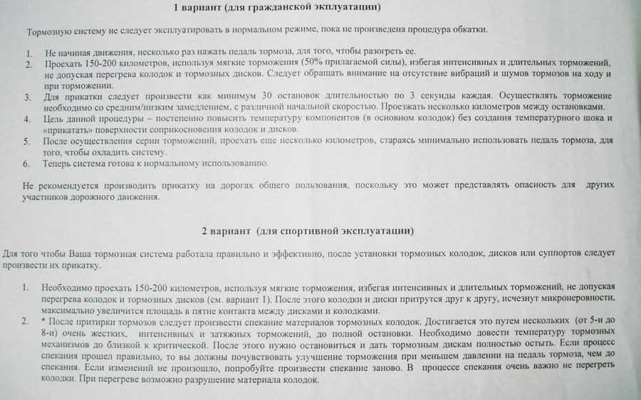 Единственное, что нам надо знать — что колодки надо привести в рабочее состояние после установки.