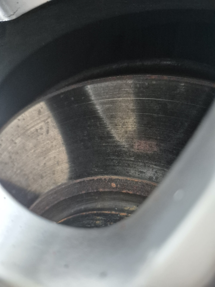Выглядит норм, диски разные по составу и колодки тоже. Главное выглядят равномерно без запеченных пятен и почти сто процентов поверхности диска работает. Ну вы видели ж наверняка диски, у которых ржавые полосы широкие — вот это плохо.