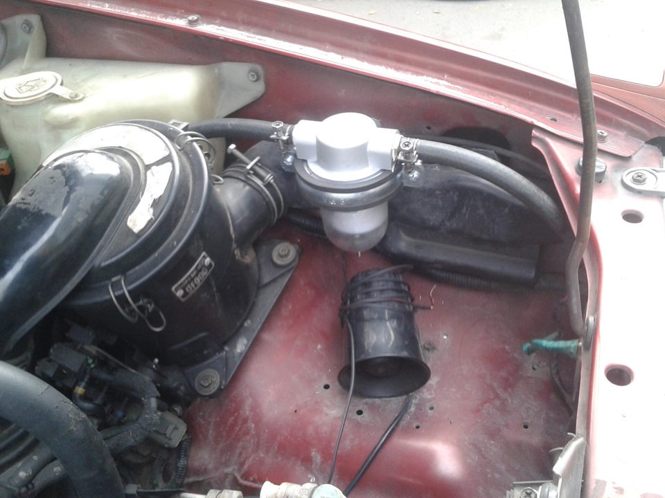 Переоборудование состоит в том что с компрессора выходят 2 шланга, ближний к радиатору идет на сапун с клапанной крышки через тройник а второй шланг, немного снимаем флянец на трубке, что бы одеть до конца кислородный шланг. А дальше ставиться влагоотделитель и насадка.