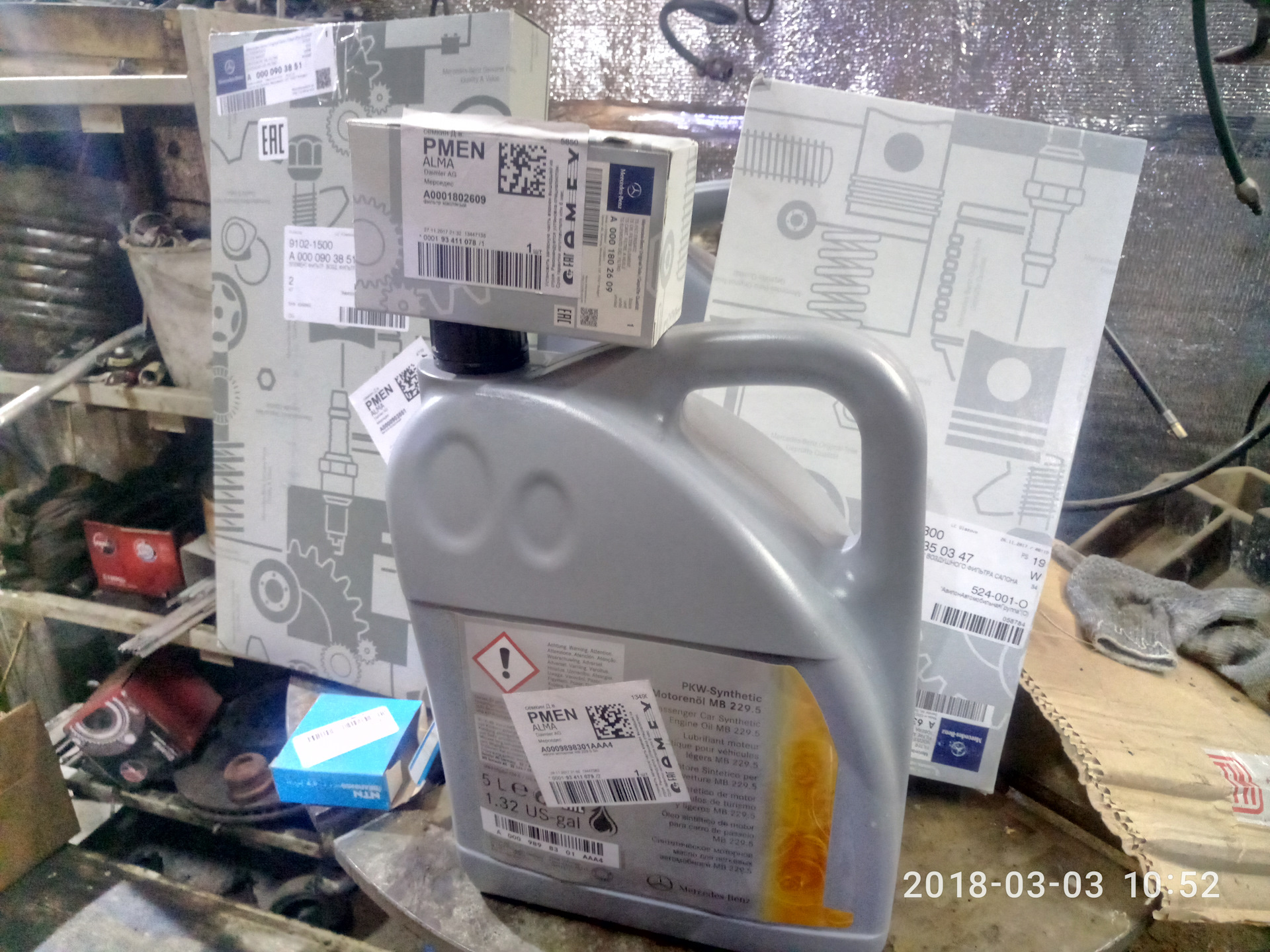 Новый фильтр, масло МВ 236.14 не стал я экономить на заменителях, всё же один раз в 60тысяч можно и оригинал позволить.