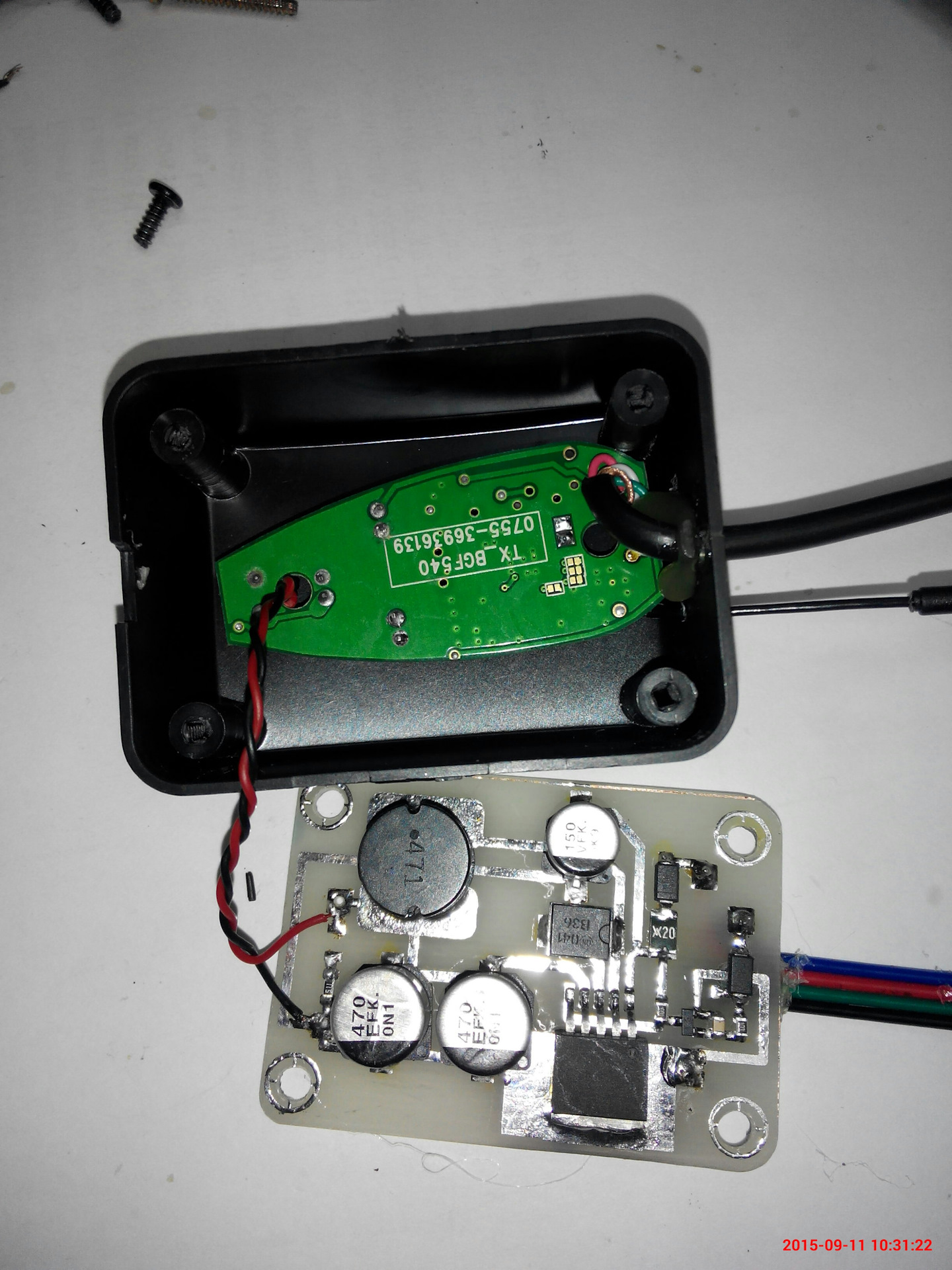 Помещаем передатчик и источник питания в одной коробке.