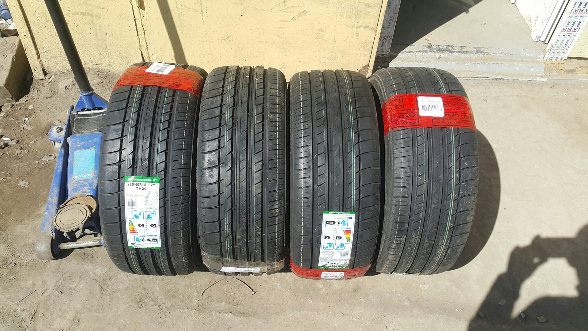 Поэтому я пошел тем же путем и с летним комплектом. Взял во Владике новый 17 года Triangle TH201 за 11 тысяч русских рублей комплект новых шин 225х40х18 размером. Доставка до Астрахани составила 1500. Ну и рубас я отдал за шиномонтаж. Резина понравилась покатался с неделю пока не шумная мягкая. В дождь пока не юзал, но все впереди.