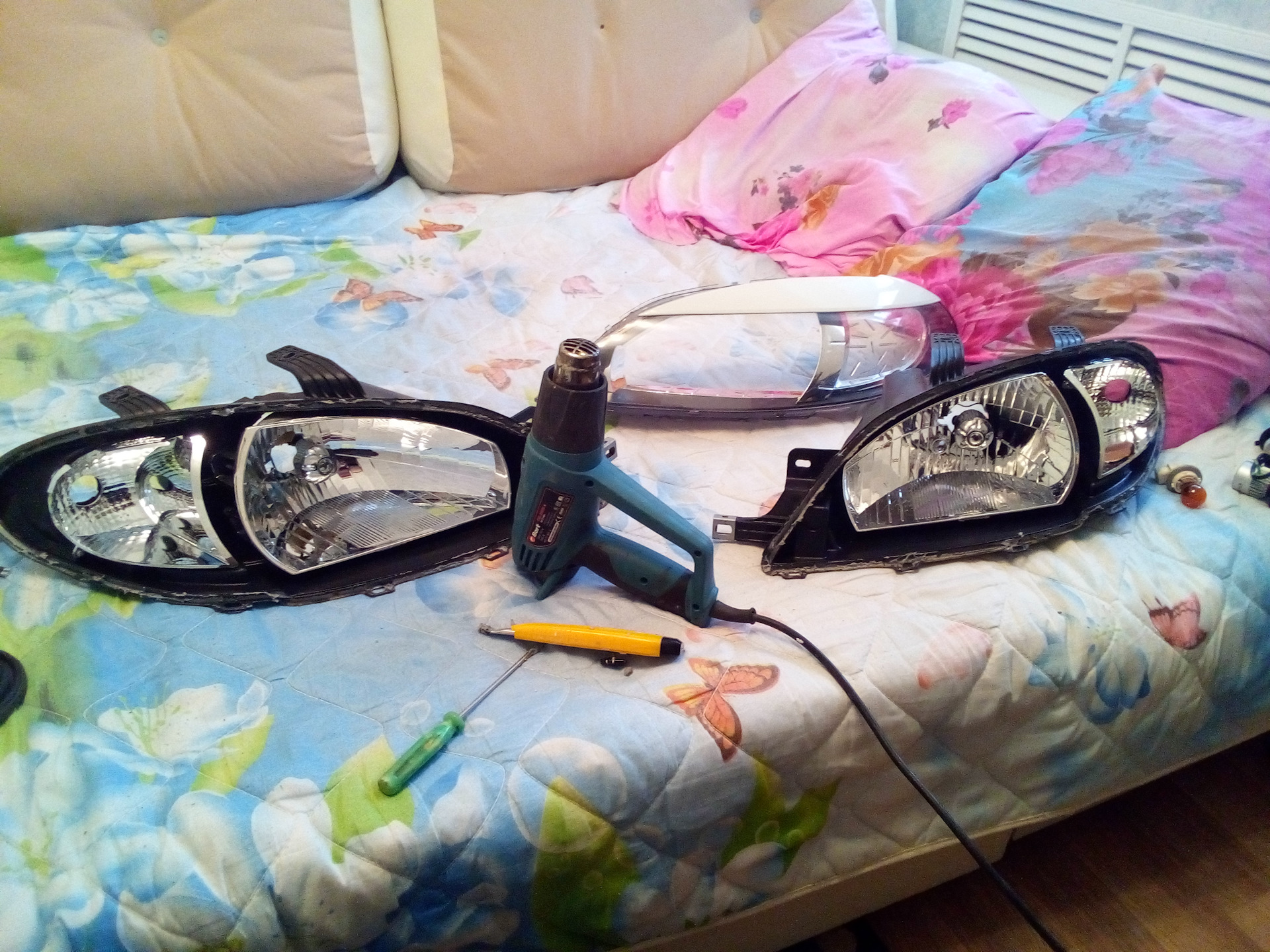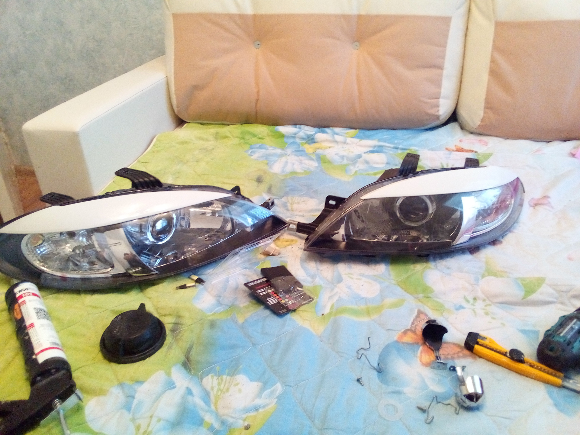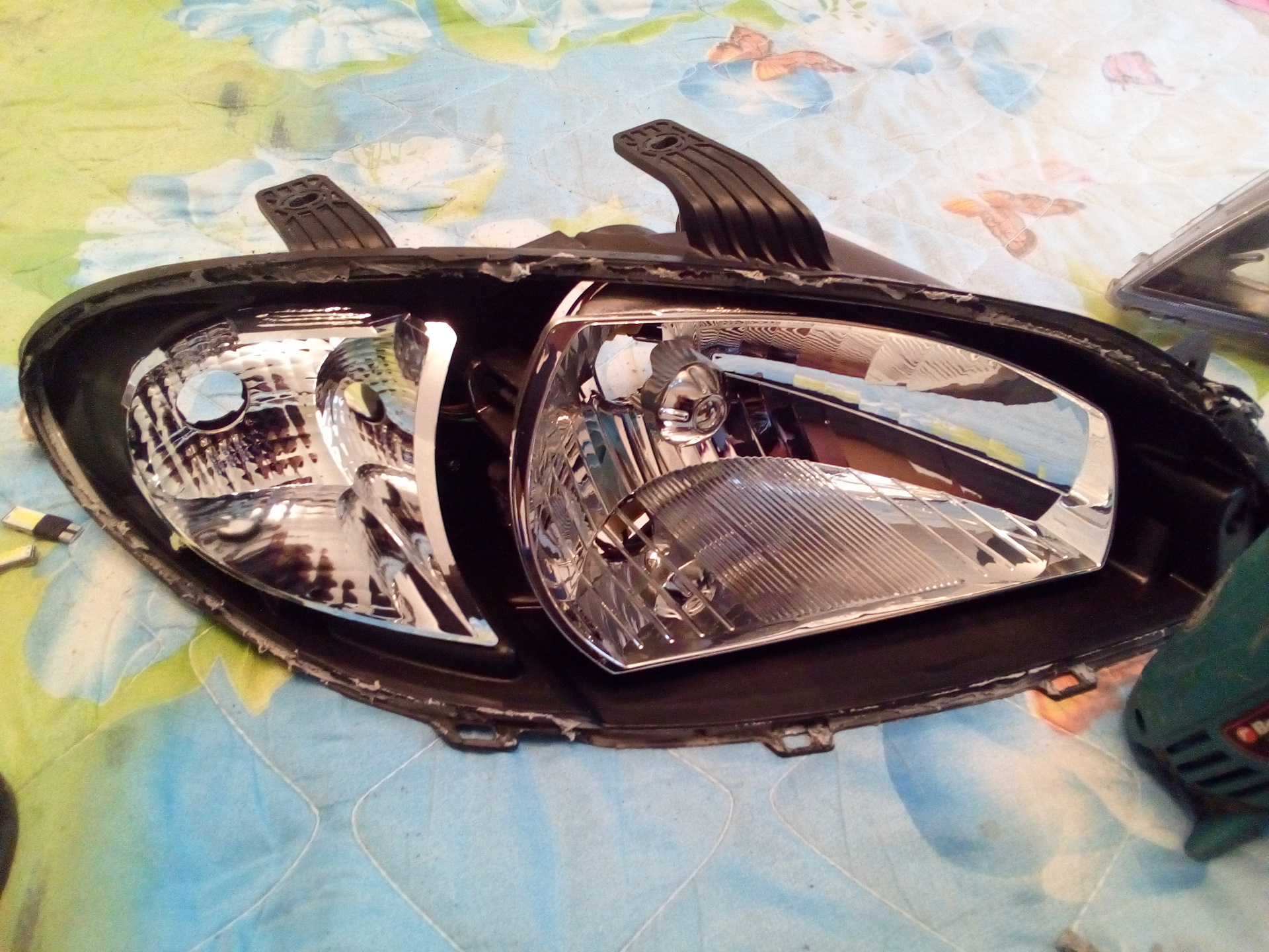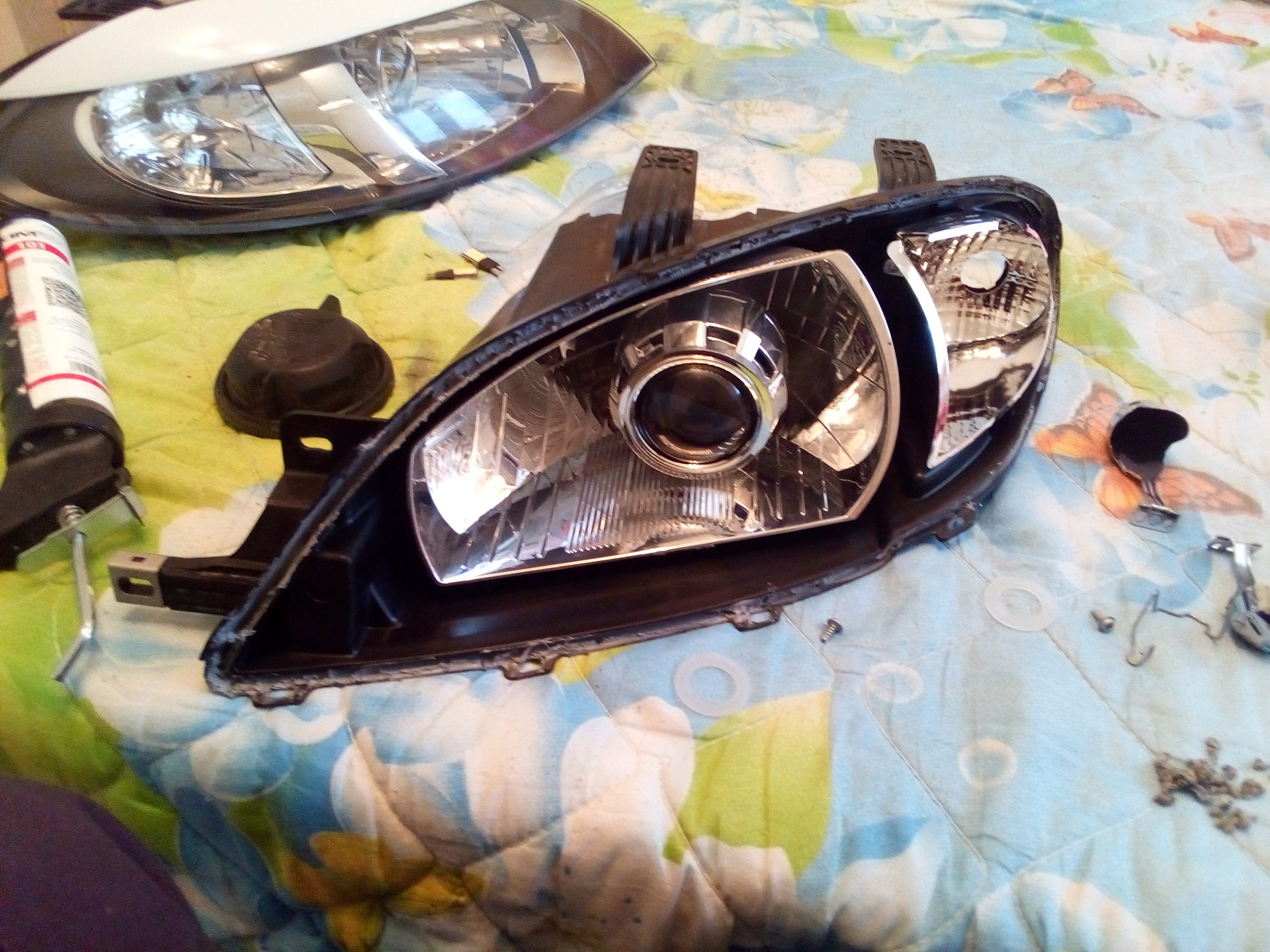 6. Очищаем со стекла фары герметик, его во внутренней части хватит, чтобы все заргетизировать обратно;