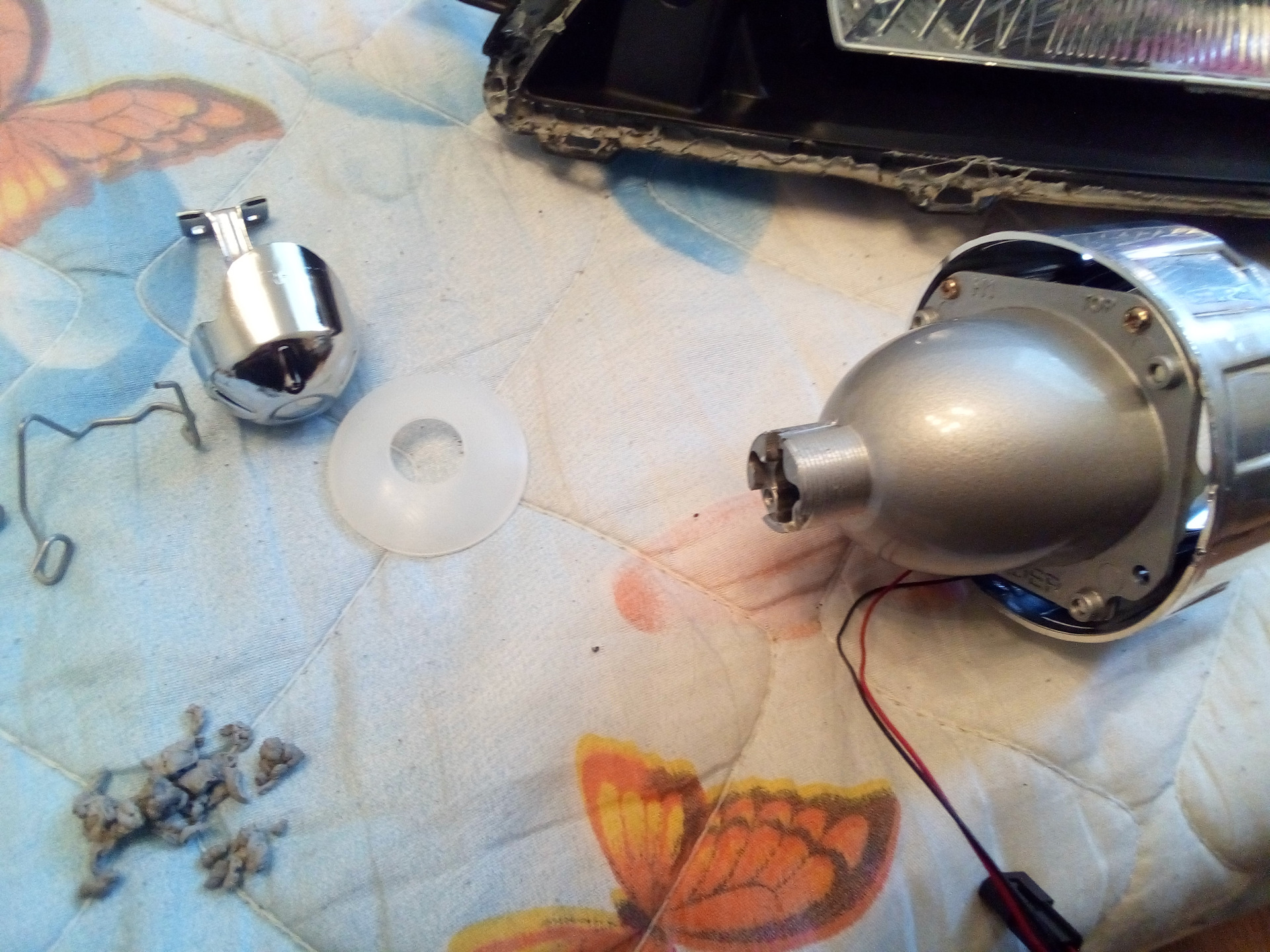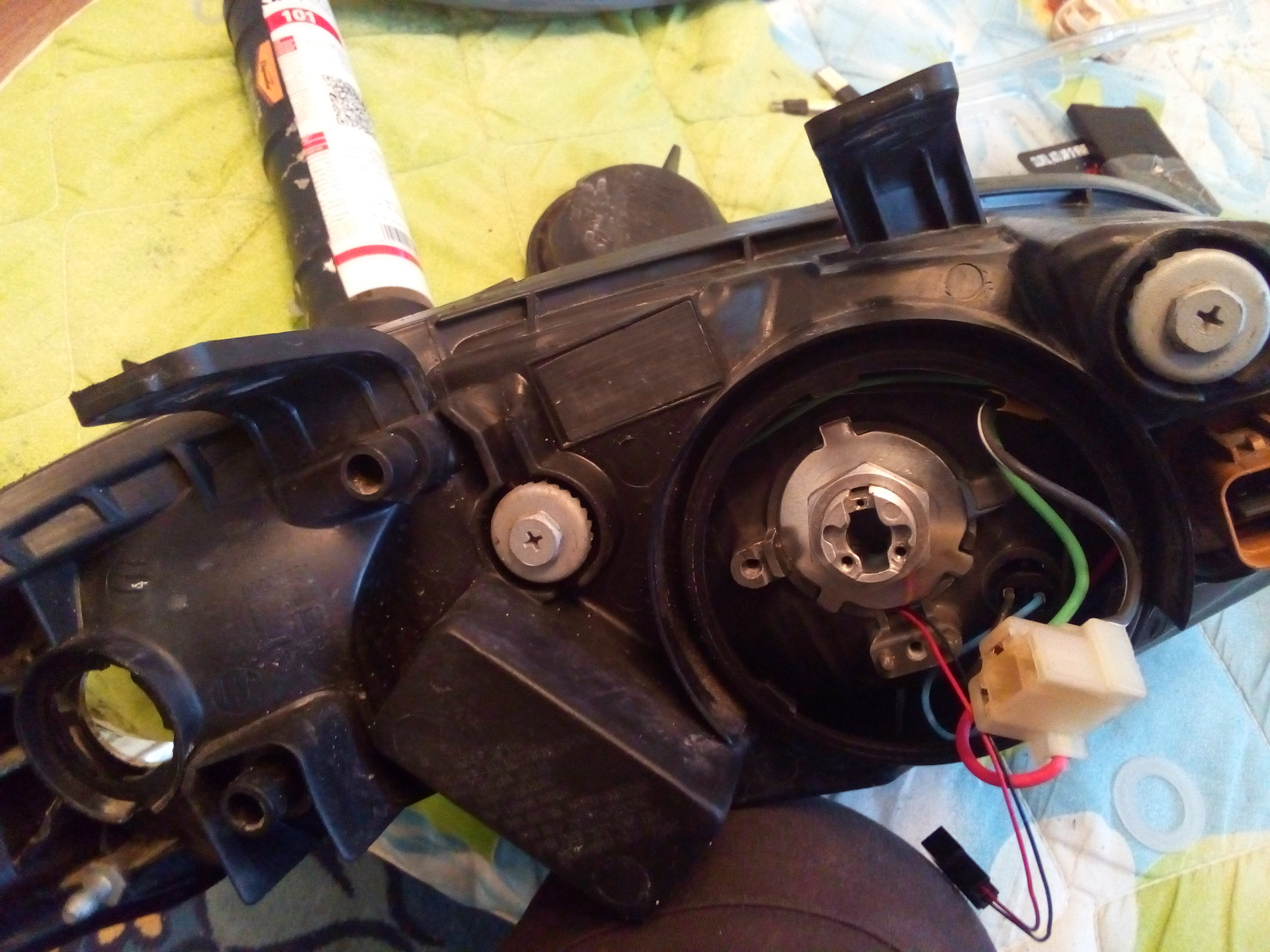 7.Демонтируем ножку за которой прячется н4 лампа, она больше не понадобится;