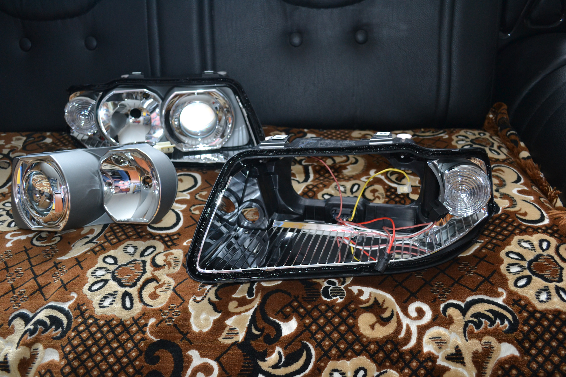 Фары распаяли и собрали в тот же день, когда я приехал, родные линзы сразу же улетели в Питер, а их место заняли LED модули SOL-9, установить их не было особых проблем, почти болт-он, только маленькие перемычки сделали и всё.